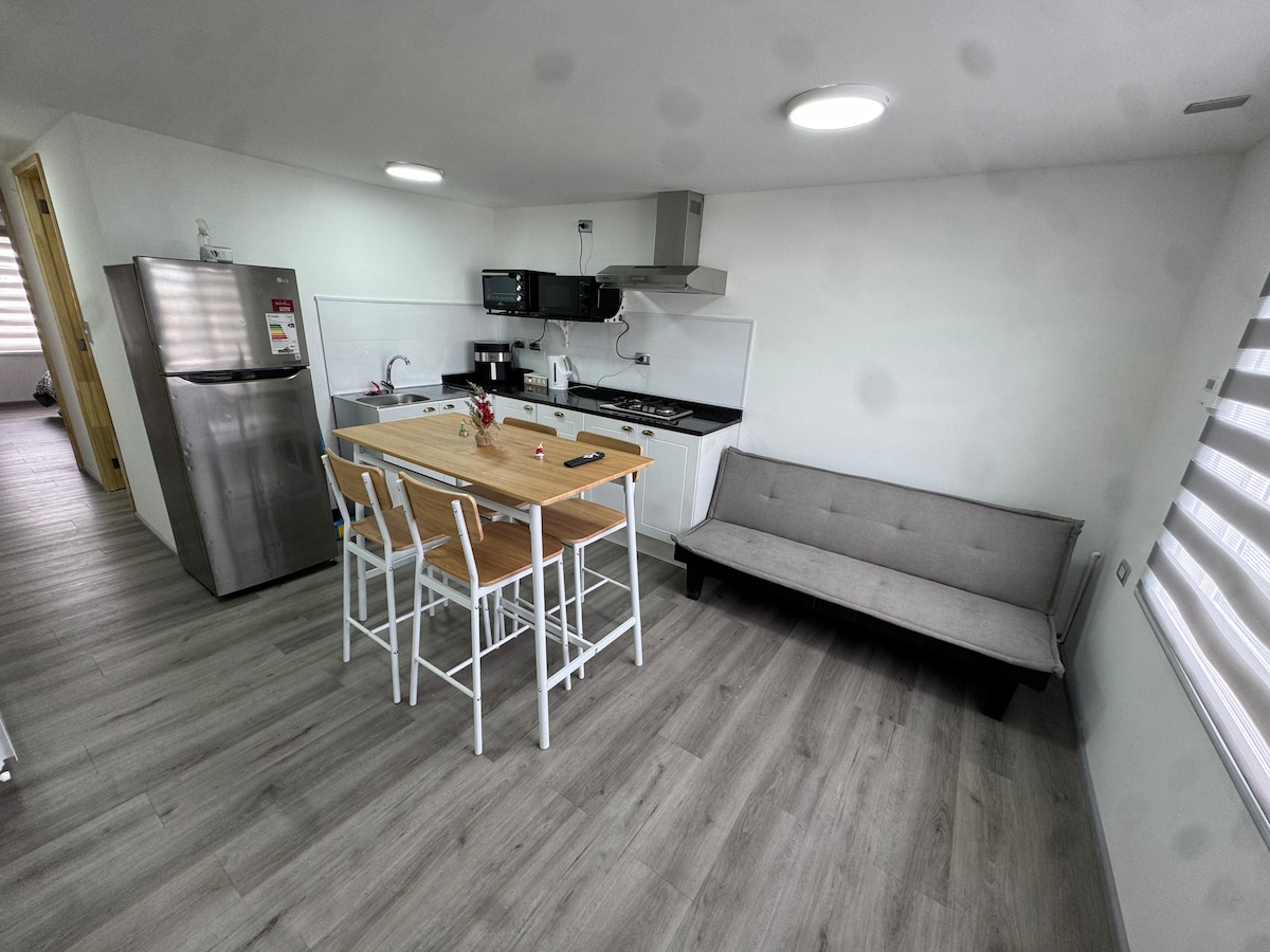 Relájate en este espacio tranquilo y elegante, 100% nuevo todas las comodidades, pueden ingresar hasta 4 personas, tiene sillón cama y una cama King, en un barrio tranquilo y muy colorido..