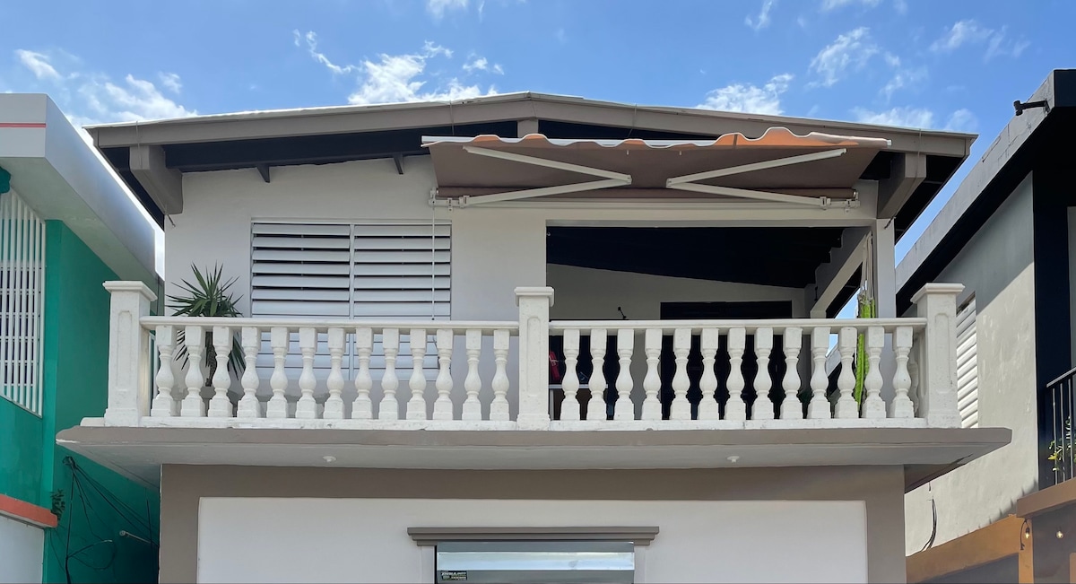 Apartament z 2 sypialniami w odległości kilku minut od plaż. Pierwsza sypialnia 1 łóżko piętrowe i 1 łóżko typu queen. Druga sypialnia z łóżkiem typu queen. 1 łazienka, salon, w pełni wyposażona kuchnia. Idealne dla grup i rodzin. Ten zabytkowy dom znajduje się w ostatnim mieście oficjalnie założonym przez Hiszpanów w 1881 roku. Dom ma nowo wyremontowany dach, podłogę, kuchnię, balkon. W ofercie: Internet, TV, szybkie Wi-Fi, ogrodzona posesja, klimatyzacja w sypialniach, lodówka, kuchenka, kuchenka mikrofalowa, sofa i hamak. 787-946-2010