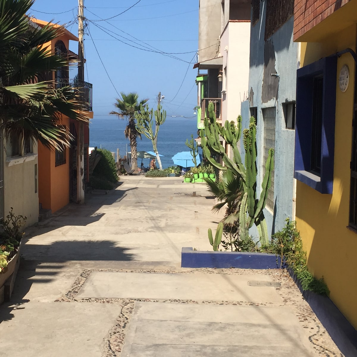 Przestronny apartament typu studio w wielopoziomowym domu na plaży w San Antonio Del Mar, 3 przecznice od plaży. Wewnątrz salon, kuchnia i pralnia. Jadalnia dla 4 osób, prywatny taras z dodatkową jadalnią i wspólny taras na dachu z grillem, paleniskiem i wspaniałym widokiem na ocean. Piękne akcenty artystyczne; niestandardowe kute żelazko, tętniące życiem mural. koegzystencja miejska. Bezpieczna i ogrodzona społeczność, ochrona 24/7, wspólne baseny, korty tenisowe i park z placem zabaw. Szybkie Wi-Fi. Miejsce dla 4 osób.