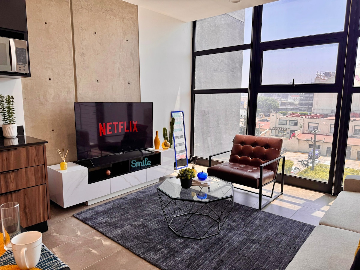 Vive Tijuana desde las alturas en este estudio premium en ICON piso 16. Vista sin obstrucciones, piscina, jacuzzi, gimnasio y parking privado. Ideal para parejas, viajes de trabajo o estancias tranquilas. A minutos de Zona Río, hospitales, cafés y consulados. Seguridad 24/7 y check-in sin contacto.