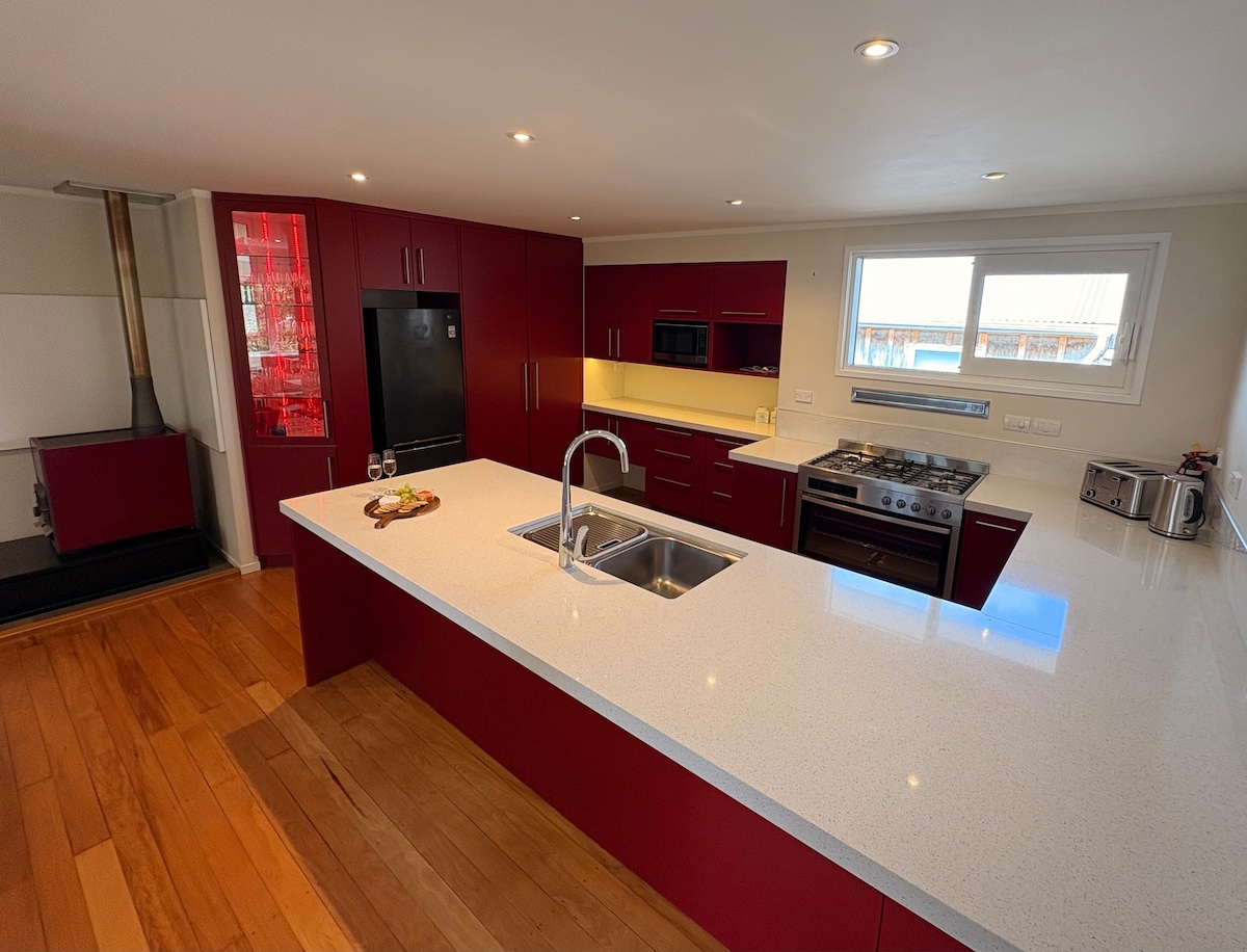 Beautiful modern new home right on the waterfront of the Whangarei harbour suitable for executive stay guests. Three bedrooms (King, Queen, and King Single) with quality bedding including 100% cotton sheeting. Main bathroom with bath, shower, and double vanity, main bedroom with ensuite. Open plan premium kitchen, dining, and lounge with expansive views to the water. A 5-minute drive to Onerahi township, and Whangarei domestic airport. 10-minute drive to Whangarei CBD. Unlimited fibre WiFi.