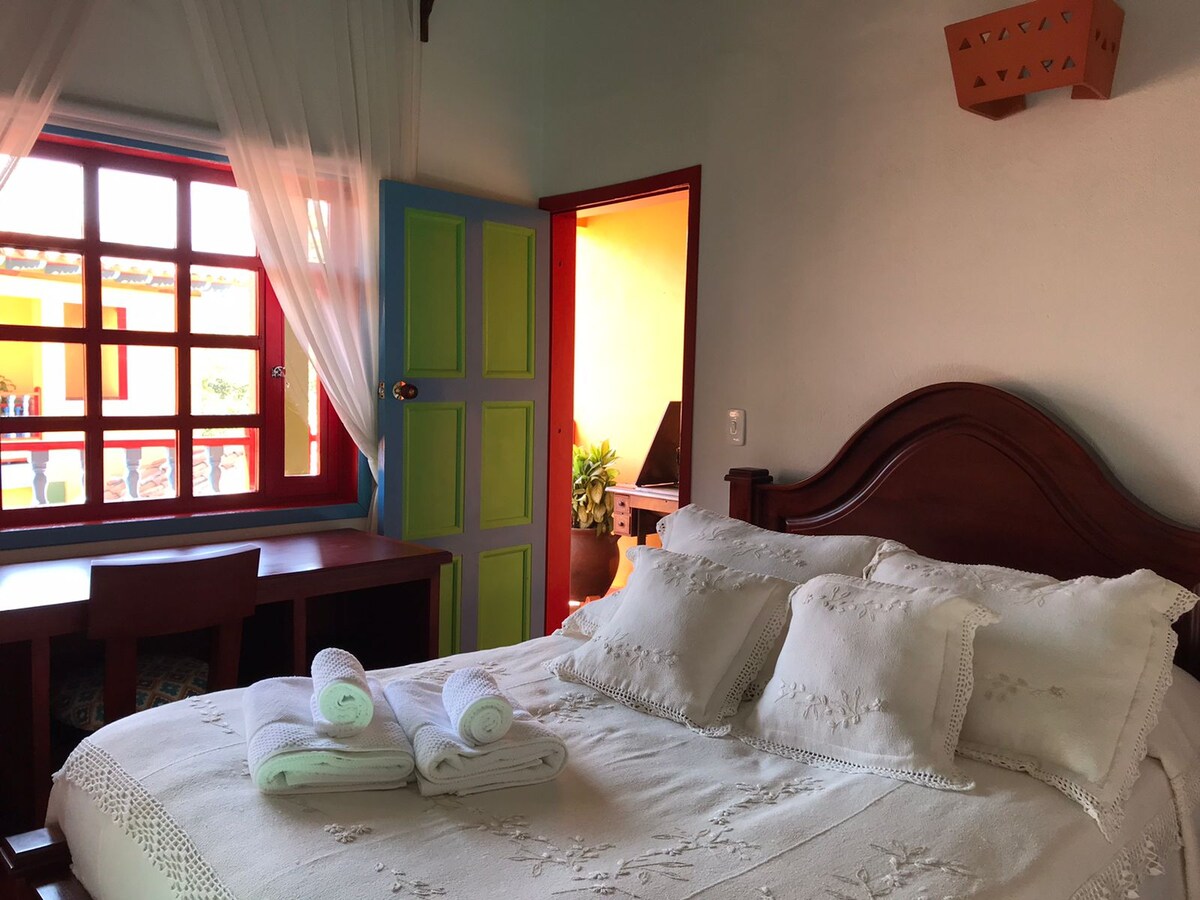 Habitación con vista panorámica a las montañas, ubicación estratégica entre sitios turísticos villa de Leiva y Ráquira, con el mejor clima del país, tranquilidad y elegancia en un mismo lugar.