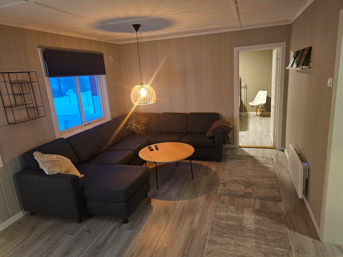 Całkowicie odnowione mieszkanie z tarasem – nowoczesny komfort, cicha lokalizacja (2 km od centrum Rjukan) Jasne i ładne mieszkanie z gliny. Łóżko w sypialni nr 1 ma podwójne łóżko o wymiarach 200x180 cm. Sypialnia nr 2 ma podwójne łóżko 200x120 cm. Zmywarka, pralka i suszarka. Ręczniki i pościel są wliczone w cenę. Central on Rjukan. W piwnicy znajduje się również oddzielna suszarnia na ubrania narciarskie i sprzęt do wspinaczki. W salonie znajduje się telewizor 75", 3-osobowa sofa i 2 krzesła. ✔Bezpłatny parking. Stacja ładowania ok. 200 m