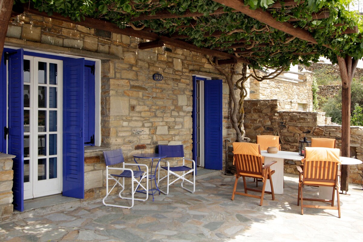 - Miejsca na pobyt z przestrzenią do siedzenia na świeżym powietrzu Tinos
