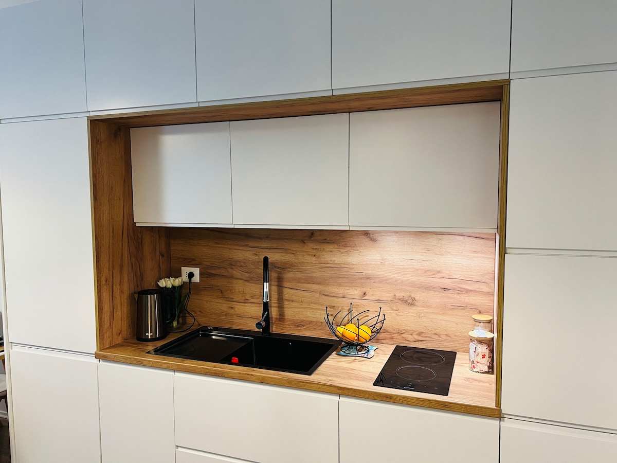Modern and cozy studio, perfect for a couple or a couple with one child. Features a spacious bed, sofa, fully equipped kitchenette, and a 65’’ Smart TV with Netflix. Stylish design, comfortable atmosphere, and central location – ideal for your stay! This unique place has a style all its own.