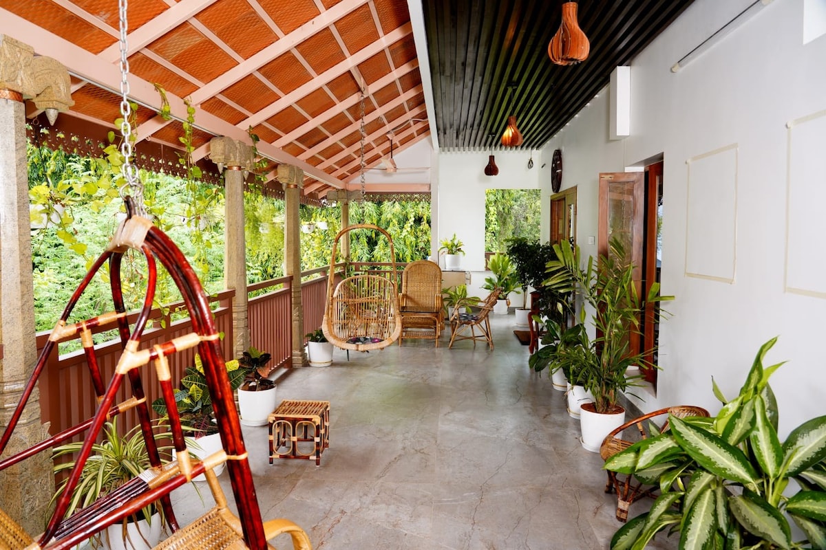 🌿 W pełni umeblowane 1BHK, 5 km od Ramana Ashram na Perumbakkam Road. Położony wśród gospodarstw i zieleni, z bujnym ogrodem do medytacji, basenem, klimatyzacją, zasilaniem UPS, Wi-Fi, telewizją przemysłową i codzienną konserwacją. Aneks kuchenny z kuchenką, blenderem i czajnikiem, wodą RO, lodówką, pralką, gorącym prysznicem i bezpiecznym parkingiem. Idealne dla samotnych podróżników lub poszukiwaczy duchowych, którzy szukają spokoju, natury i samotności. ✨