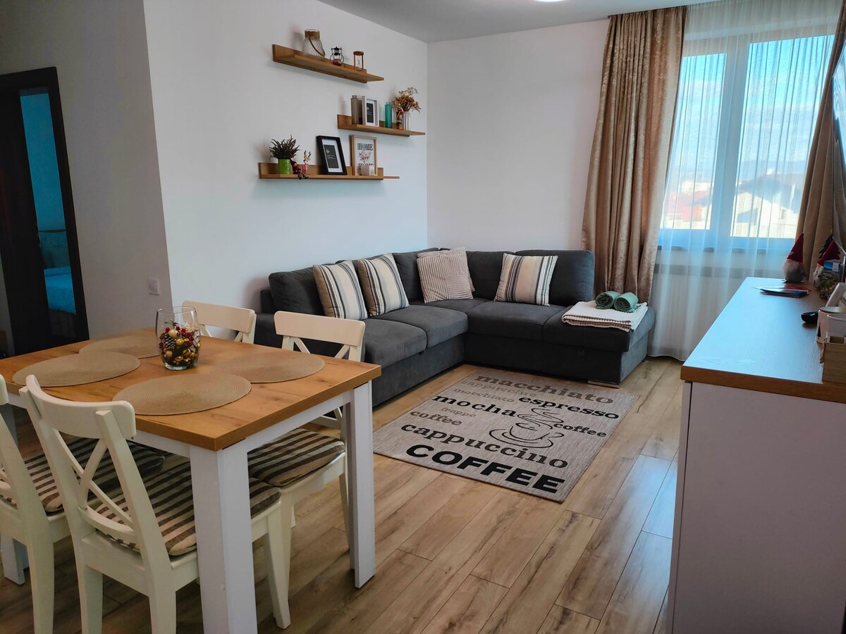Zapraszamy do naszego 79m2 nowego apartamentu w pobliżu Starego Miasta Sibiu centrum. Znajduje się w nowym budynku w pobliżu głównego dworca kolejowego i autobusowego. Przed budynkiem znajduje się bezpłatny parking i sklep spożywczy. Apartament został zaprojektowany przez nas i wszystko zostało wybrane, aby dać wrażenie, że jesteś w domu. Chcielibyśmy Ci dać jak najlepsze doświadczenie w naszym rodzinnym mieście, aby otrzymać 5* recenzję i wierzymy, że opuścisz to miejsce lepiej, niż je znalazłeś.
