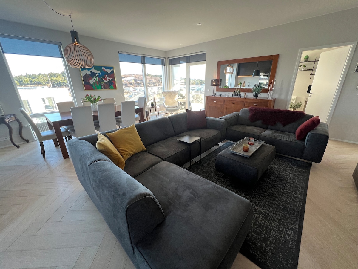 Ten wspaniały apartament znajduje się na 4 piętrze z niesamowitym widokiem na ocean nad starym portem. Nasz apartament znajduje się w centrum miasta, najlepszej możliwej lokalizacji w Reykjaviku. Apartament o powierzchni 200 m2 z pięknym widokiem na stary port i Hallgrímskirkja. Kuchnia jest otwarta i w pełni wyposażona we wszystkie urządzenia kuchenne, których potrzebujesz. Zmywarka do naczyń, ekspres do kawy itp. Do kuchni przylega jadalnia z bardzo dużym stołem dla maksymalnie 20 osób, z której można podziwiać spektakularny widok. Wzdłuż jadalni znajduje się jeden z salonów ozdobionych wygodnymi, ale stylowymi meblami. Druga duża sofa w salonie, telewizor i możliwość przejścia na balkon. Balkon jest bardzo przestronny, z pięknym widokiem na śródmieście i Hallgrímskirkja W apartamencie znajdują się trzy sypialnie o powierzchni ok. 25 fm2 z łóżkami typu queen size i przestronnymi szafami. Wszystkie sypialnie są wyposażone w inteligentny telewizor i prywatne łazienki z prysznicem. Na podłodze jest ciepło, bardzo wysokie sufity, a apartament znajduje się na 4 piętrze z bardzo miłymi sąsiadami. Na pierwszym piętrze znajduje się Galeria Sztuki. Będziesz mieć dostęp do wszystkiego, czego możesz potrzebować, bezpłatnego WIFI, czystych ręczników i niezbędnych rzeczy do gotowania, oleju, cukru, kawy, przypraw itp. Godzina wymeldowania to 12:00 w południe, a zameldowanie o 15:00 lub później, jeśli chcesz. Jest to powszechna zasada, ale w razie potrzeby bierzemy pod uwagę inne terminy. Jesteśmy bardzo gościnnymi i przyjaznymi właścicielami, więc nie wahaj się z nami skontaktować. Położone w centrum miasta przy starym porcie, mieszkanie znajduje się o rzut kamieniem od Muzeum Sztuki w Reykjaviku i The National Gallery of Iceland, a także sklepów i kawiarni. Wybierz się na spacer wzdłuż Rzeźby i Shore Walk, a następnie zatrzymaj się w Koparze na kolację.