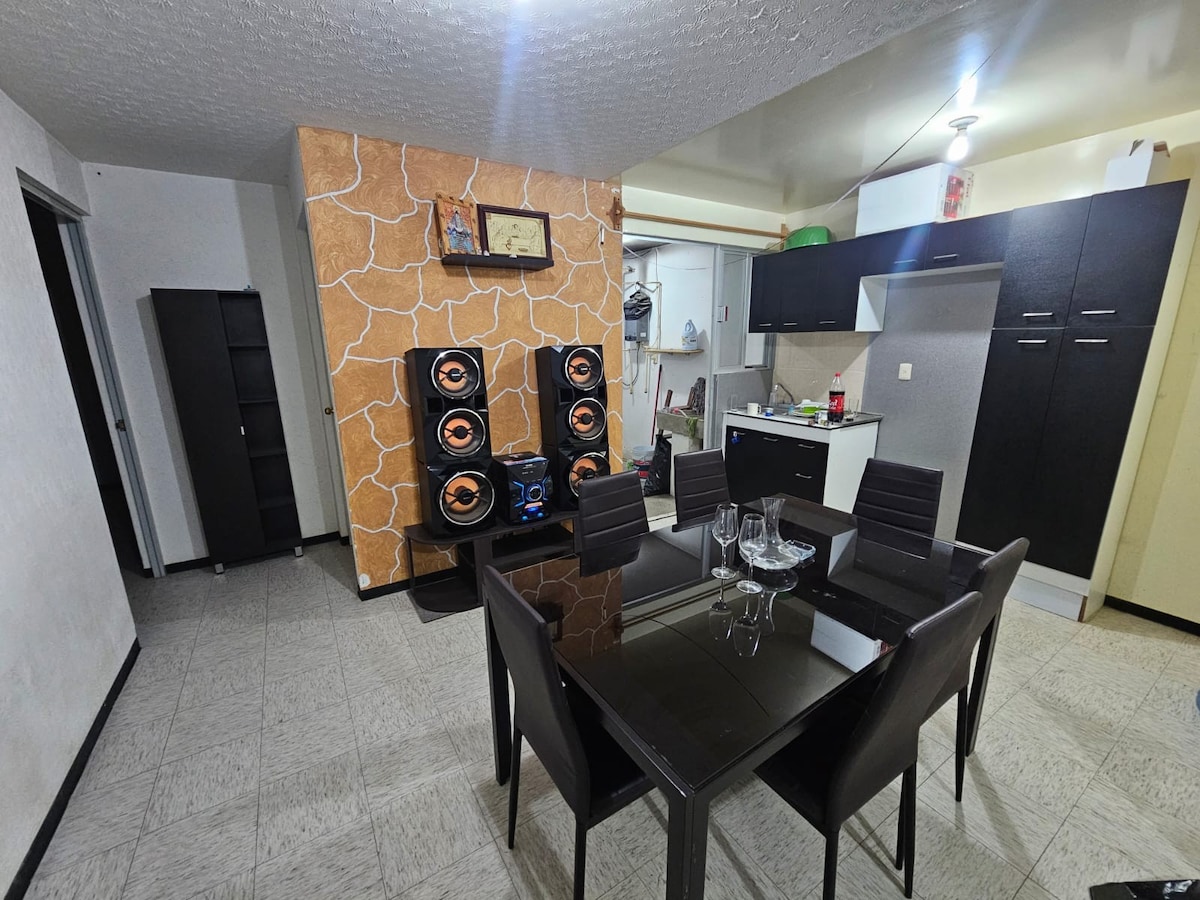 Ciesz się komfortem tego pięknego, cichego, bezpiecznego i centralnie położonego miejsca, 10 minut spacerem od historycznego centrum Tlaxcala, 2 minuty od Plaza Vértice, Walmartu, stadionu Tlahuicole, rynku miejskiego i wielu innych atrakcji. Wszystkie usługi, Wi-Fi, światło, kuchnia, gaz, ciepła woda, telewizja i wspólny kącik zabaw, łatwy dostęp do transportu publicznego i prywatnego. Wystawiane są faktury. Dostępne 24 godziny na dobę.