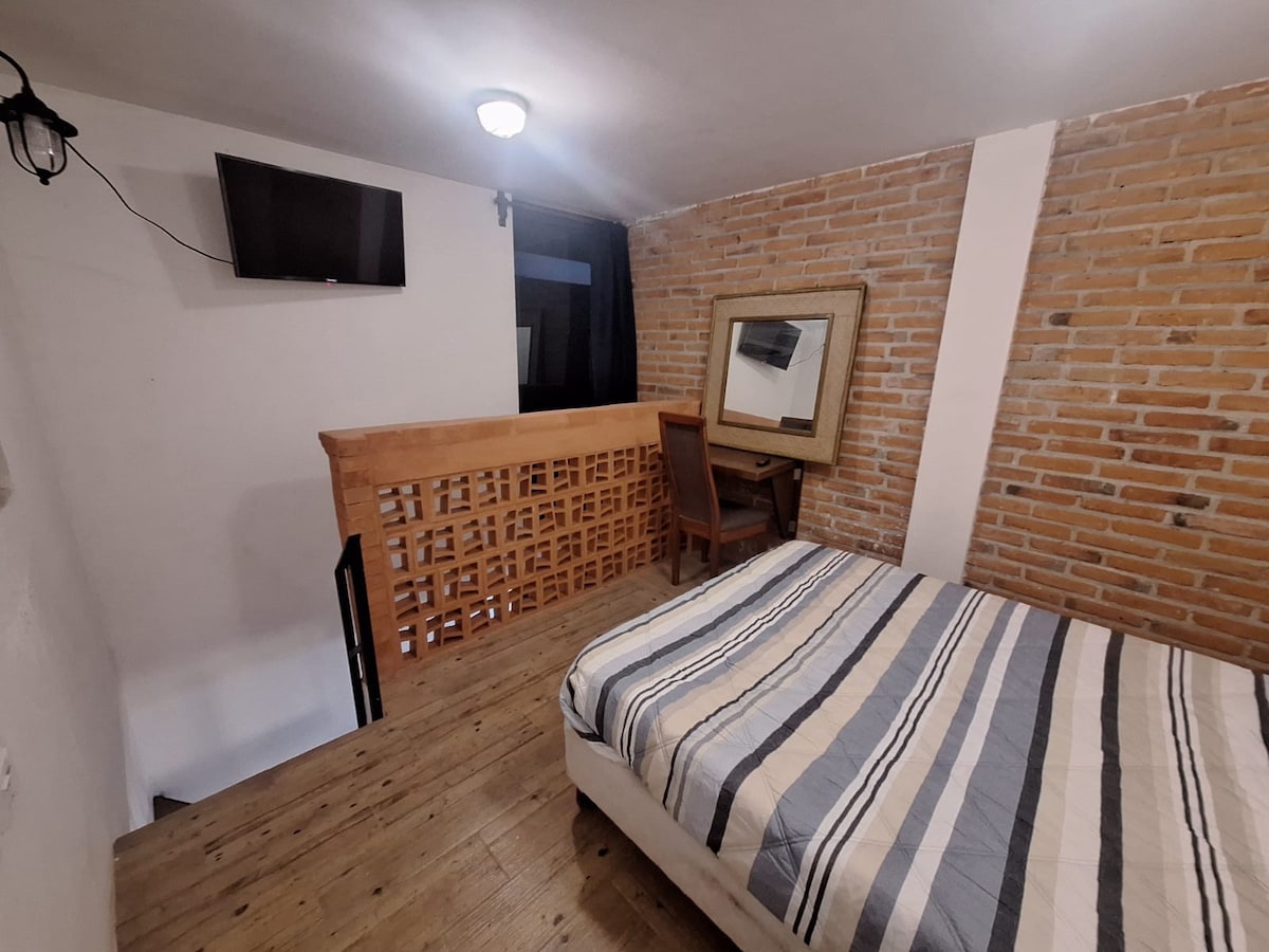 Ekskluzywny loft z jedną sypialnią, który wyróżnia się przytulnym wnętrzem, ozdobiony nowoczesnym i eleganckim akcentem. Kilka kroków od centrum handlowego Angelopolis, gdzie można znaleźć światowej klasy sklepy, a także najlepsze bary i restauracje w mieście o różnych smakach. Oferujemy bawełniane białe, wysokiej jakości materac, który pozwoli Ci na absolutny odpoczynek. Obejmuje w pełni wyposażoną kuchnię, inteligentny telewizor, bezpłatne WiFi.
