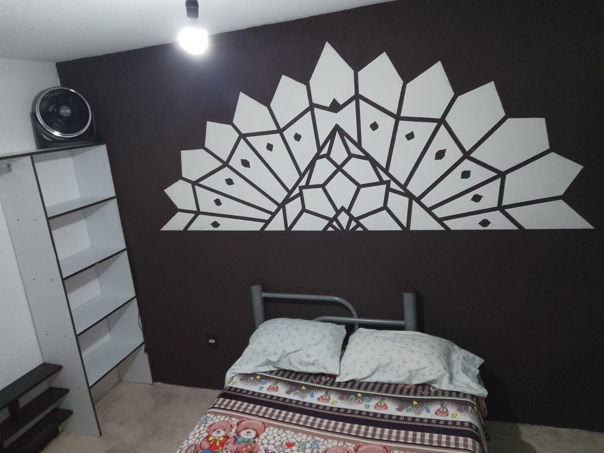 Wyjątkowa i idealna przestrzeń dla Ciebie Całkowicie niezależna z podwójnym łóżkiem, łazienką z toaletą, lodówką i aneksem kuchennym. Jest idealna dla 1 lub 2 osób, bardzo jasna przestrzeń i Wi-Fi idealne do pracy z domu. Ciesz się telewizorem z kablówką, światłem i ciepłą wodą przez cały dzień oraz dobrym widokiem na wyższe piętro. Świetna lokalizacja, z usługami transportowymi, jedna ulica od metra. Znajduje się 20 min od terminalu CAPU, 5 min pieszo Oxxo, apteki i targ 3 przecznice dalej