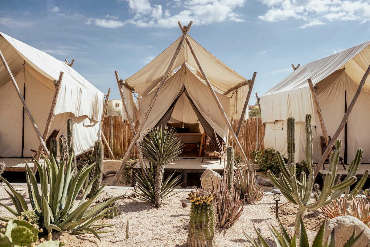 Welcome to Baja Temple. A boutique hotel/glamping experience in the middle of the desert, where stars and the cactuses embrace you at night and make you feel in it! This you cant experience in any place in the world. Just across the street, bars, cafes and restaurants are located. The turtle release camp and the beach are just a couple minute walking and with luck is possible to see whales from our big rooftop. We will make everything possible to make you feel at home.