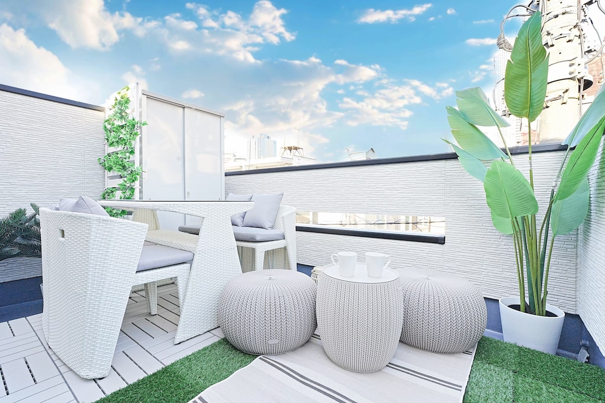HeySky Oshiage A clean, private hotel renovated in 2024. Designed so guests can enjoy a Tokyo stay that feels like home. From the rooftop balcony, enjoy Skytree views, especially at night. Rent the 100 m² house with kitchen, four bedrooms(Thomas-Symonds mattresses), and two bathrooms. Children’s chairs and toys available, ideal for families. [Important] ・Entrance on the second floor; stairs from the street(see photos). ・Coin laundry on the first floor; some noise or vibration may occur.