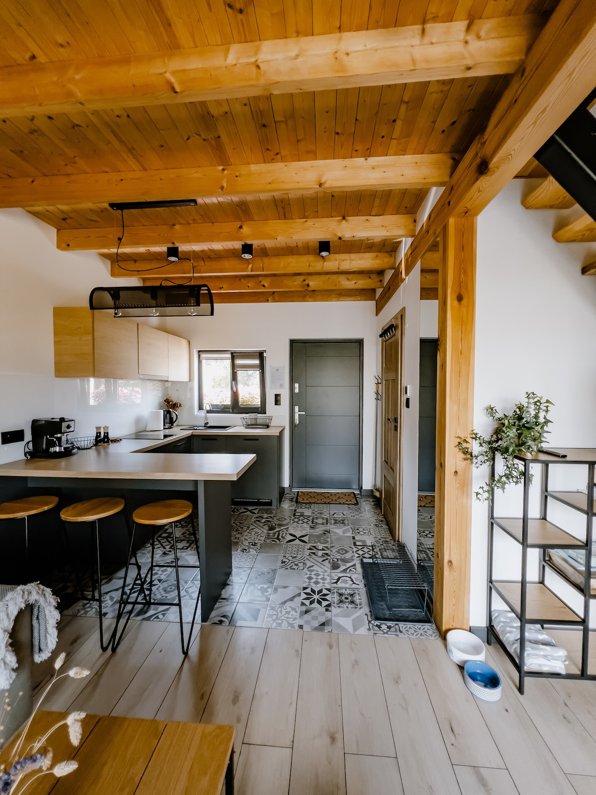 Oferujemy całoroczny drewniany domek gościnny, położony na terenie Parku Krajobrazowego Wysoczyzny Elbląskiej. Spędziliśmy w nim dużo czasu, ciesząc się spokojem i magią lasu. Stworzyliśmy go z myślą o komfortowym przebywaniu w nim 2 osób. Do dyspozycji oddajemy sypialnię, salon z kuchnią oraz zadaszony taras. Jest to raj dla introwertyków lub idealne miejsce do pracy zdalnej na łonie natury. Niech to miejsce w lesie stanie się Twoim prywatnym azylem, miejscem, gdzie czas zwalnia…