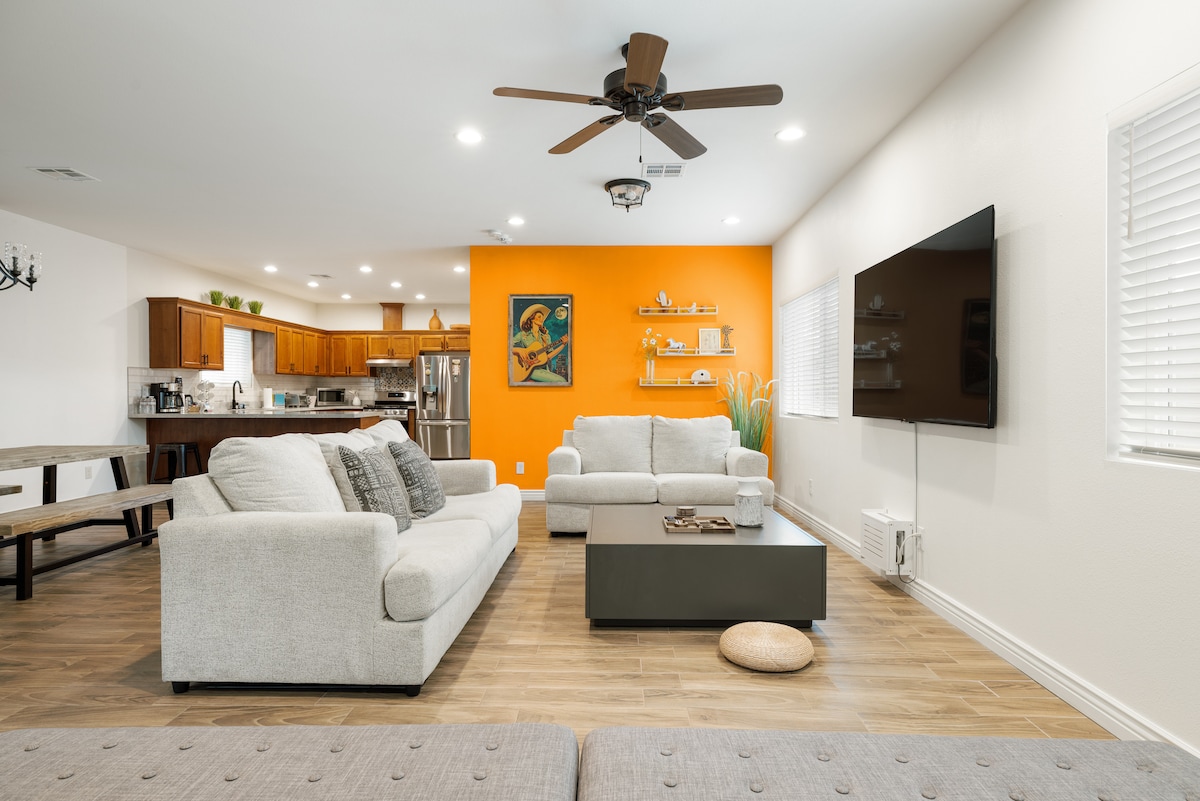 Zrób sobie przerwę i zrelaksuj się. „W” ma własne, bezkluczykowe, prywatne wejście. Do dyspozycji gości jest ponad 375 stóp kwadratowych przestrzeni do relaksu. W sypialni znajduje się pełne łóżko i telewizor. W salonie znajduje się rozkładane łóżko i pojedynczy futon. APARTAMENT JEST POŁĄCZONY Z GŁÓWNYM DOMEM. Będziesz dzielić dwie ściany, basen, grill i podwórko z głównym domem. Apartament wyposażony jest w lodówkę, kuchenkę mikrofalową i ekspres do kawy Keurig. Obiekt znajduje się 10 minut od Phoenix Raceway i 15 minut od State Farm Stadium!