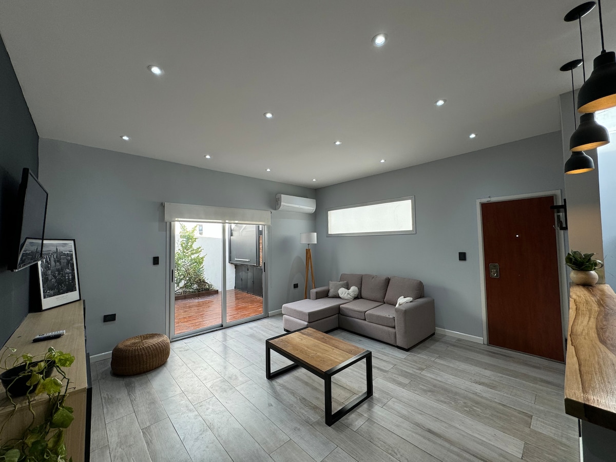 Zapraszamy do tego wspaniałego apartamentu (55 metrów) o doskonałej lokalizacji, z basenem i widokiem na park San Martín. 10 przecznic od centrum miasta. Ogromny taras z grillem, stołem i krzesłami. Wyposażony we wszystko, czego potrzebujesz, aby Twój pobyt był idealny. Wi-Fi i telewizor Smart TV z kablówką i Netflixem w salonie i pokoju. 2-osobowa kanapa i 1-osobowe łóżko, pełna łazienka i toaleta. Garaż jest dostępny za dodatkową opłatą. Tylko Airbnb.