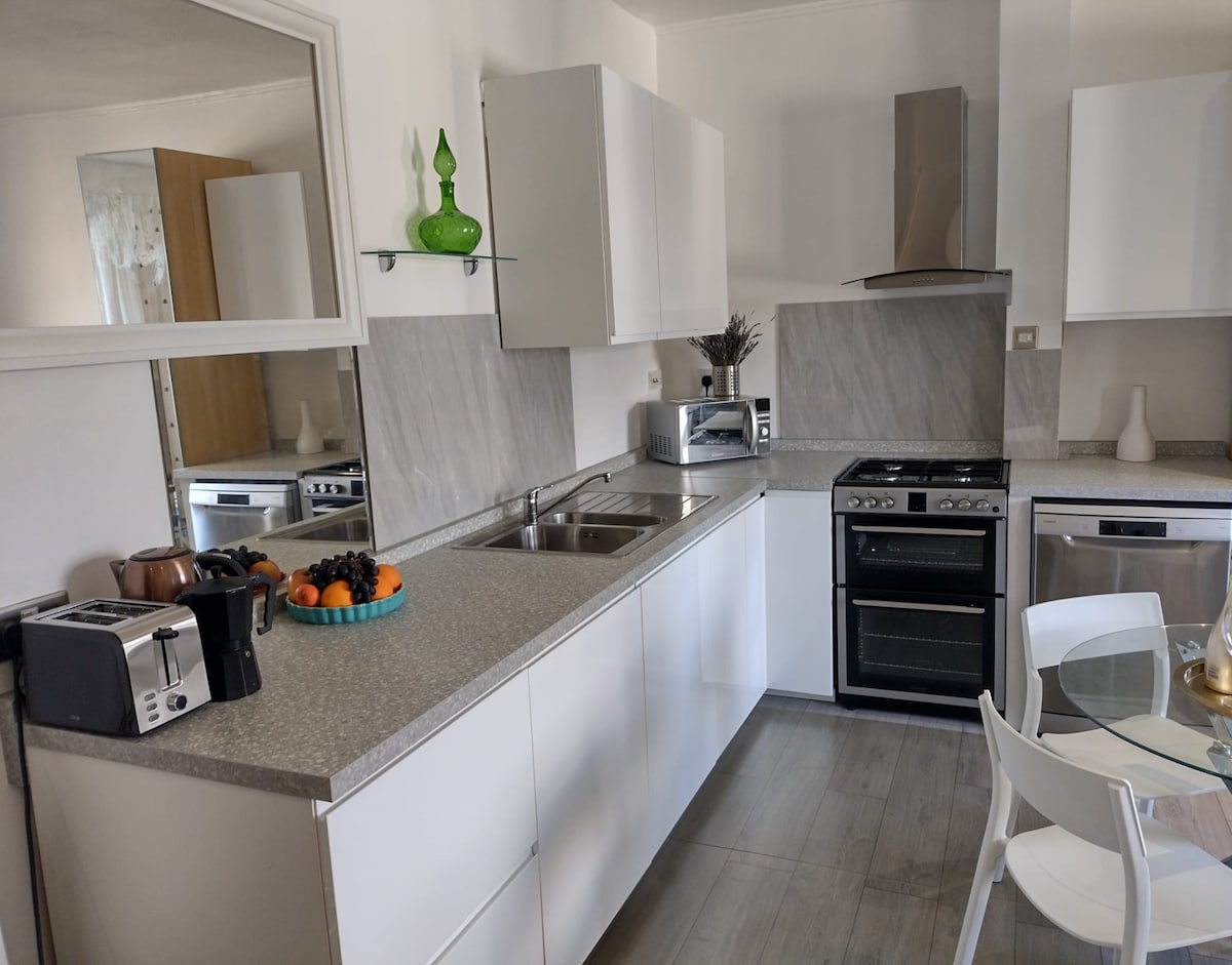 Zatrzymaj się w naszym pięknie odnowionym mieszkaniu z jedną sypialnią, którego remont został ukończony w 2025 roku. Idealne dla par, rodzin lub znajomych, oferuje sypialnię z łóżkiem typu super king (z możliwością rozłożenia na dwa pojedyncze), przytulny salon z podwójną rozkładaną sofą oraz nowoczesną kuchnię i łazienkę. Dogodna lokalizacja – autobus zabierze Cię na dworzec kolejowy w 5 minut, a stamtąd bezpośredni pociąg w 15 minut do centrum Londynu. Idealna baza wypadowa na londyńskie przygody!