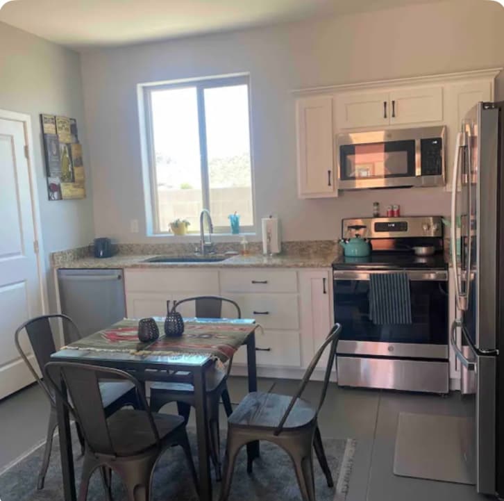 - Recently built 600sf suite w/ self check-in - Driveway parking - Super comfy mattress & pillows - Modern kitchen w/ microwave/convection - HD TV, free wifi - Shopping, restaurants, all close by, check our guide! - 15 min to Luke AFB, Goodyear ballpark, airport - 2 min to I-10, 6 to Rt 303 - Easy access to greater Phoenix area - Short drive to great (and free!) hiking trails - Minutes from Verrado