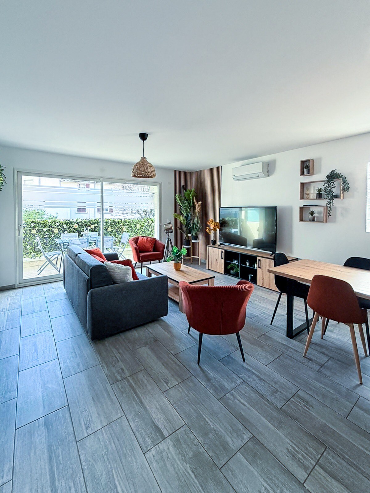 Apartament z 3 sypialniami i 3 niezależnymi łazienkami, całkowicie odnowiony, z w pełni wyposażoną kuchnią (w tym pralka) blisko centrum Lagnieu. wynajem umeblowanego apartamentu na tydzień. telewizor w salonie i w każdej sypialni. klimatyzacja / pergola na tarasie / pościel / sprzątanie wliczone w cenę możliwość samodzielnego zameldowania i parkowania