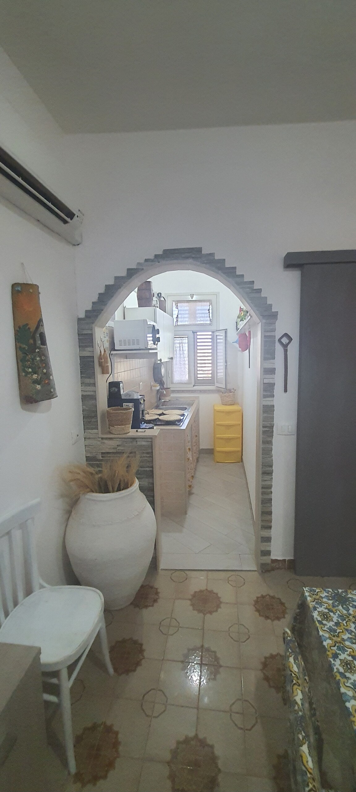 A rare opportunity to stay in an old Sicilian farm with a beautiful terrace shaded by an ancient vine. Authentic furniture with great attention to detail. Overlooking a beautiful valley of trees and farmland and a sea view from the balcony. Pick seasonal vegetables from the garden, lemons and oranges in the secluded valley below and fresh herbs that grow wild throughout the 18 hectares of paradise surrounding the house. 25 minute drive to the beaches of Vendicari; 15 minute drive to Noto.