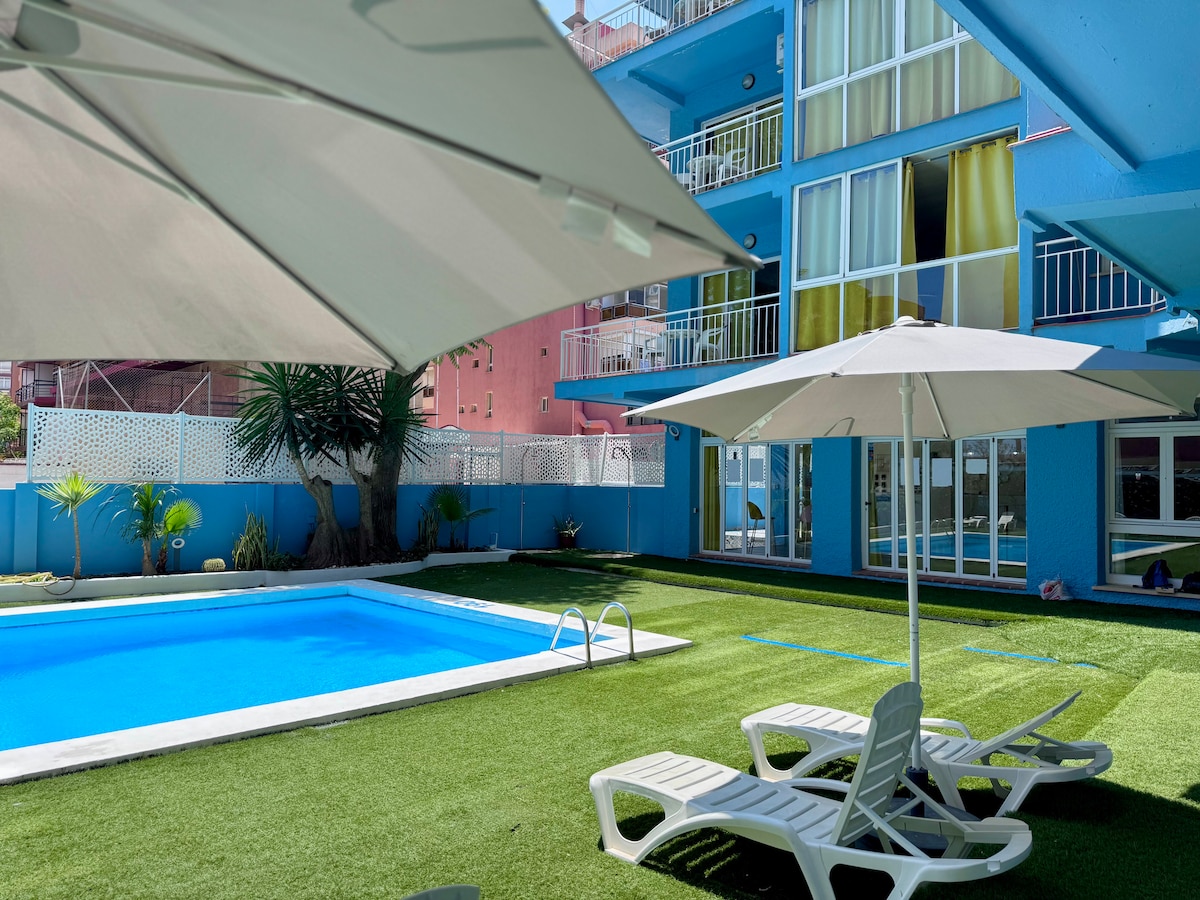 Apartament w stylu andaluzyjskim z 2 sypialniami i 2 balkonami w Pueblo Blanco. Znajduje się bardzo blisko schodów w kierunku plaży i w samym środku dzielnicy rozrywkowej, barów i restauracji. Każda sypialnia wyposażona jest w łóżko typu queen-size. Jedna sypialnia i jeden balkon wychodzą na plac Pueblo Blanco, a druga sypialnia i balkon wychodzą częściowo na morze. Przestronny salon wyposażony jest w telewizor Smart TV, jadalnię i szybki internet. Ponadto znajduje się tu w pełni wyposażona oddzielna kuchnia.
