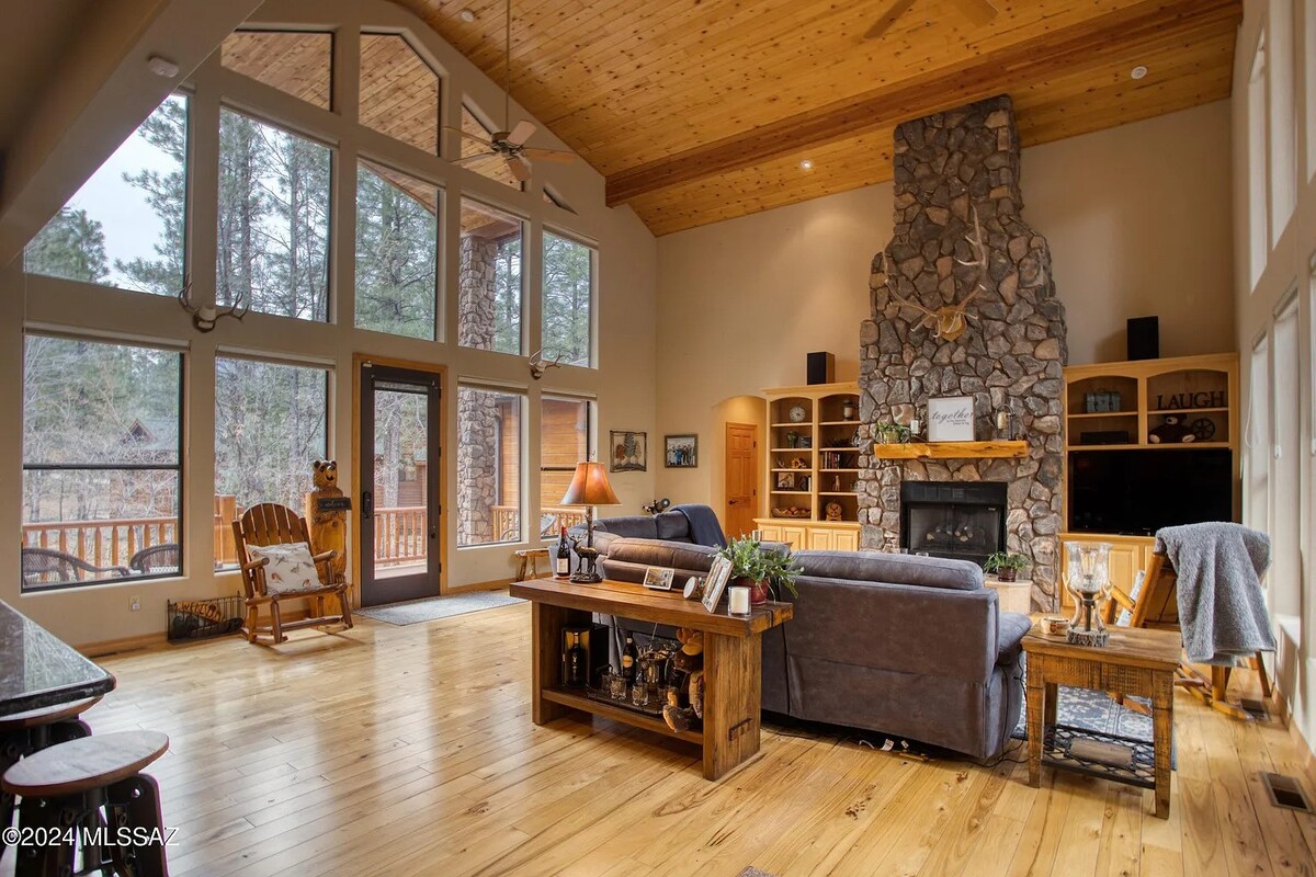 Ten wynajem znajduje się między Showlow i Pinetop. Drewniana chata jest idealna dla osoby samotnej, pary, a także małej grupy lub rodziny. Domek jest przyjazny dla zwierząt. Loft na piętrze to hit wśród dzieci i dodatkowych osób do spania. Goście mogą korzystać z klubu i jego udogodnień. Dwa miejsca do siedzenia wewnątrz, a także palenisko na świeżym powietrzu pozwalają na różnorodność spotkań. Społeczność jest spokojna, przyjazna i bardzo zalesiona. Inteligentne telewizory, Wi-Fi Starlink i palenisko. Centralna klimatyzacja i ogrzewanie.