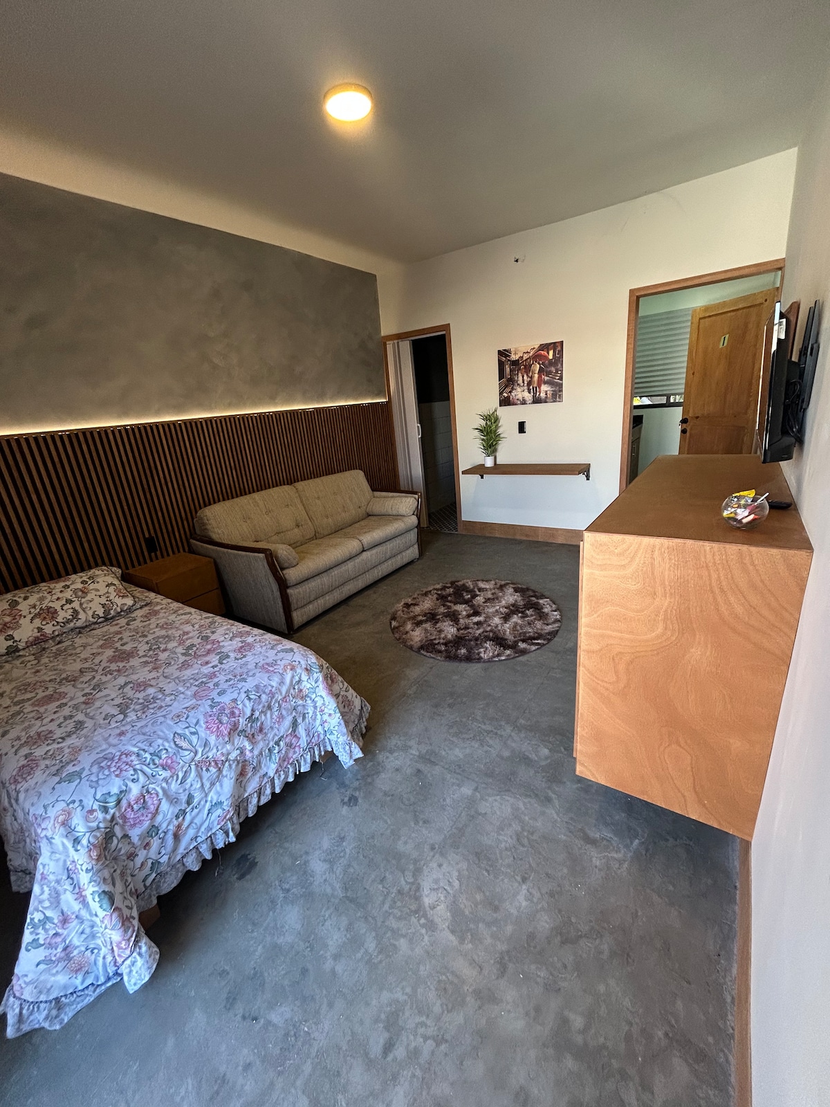 Pokój jest małym miejscem idealnym do odpoczynku po całym dniu pracy, ma wszystkie udogodnienia, w tym wodę, prąd, gaz, małą kuchenkę, porcję, kuchenkę mikrofalową, kuchenkę mikrofalową, kuchenkę mikrofalową, pralkę i suszarkę w korytarzu
