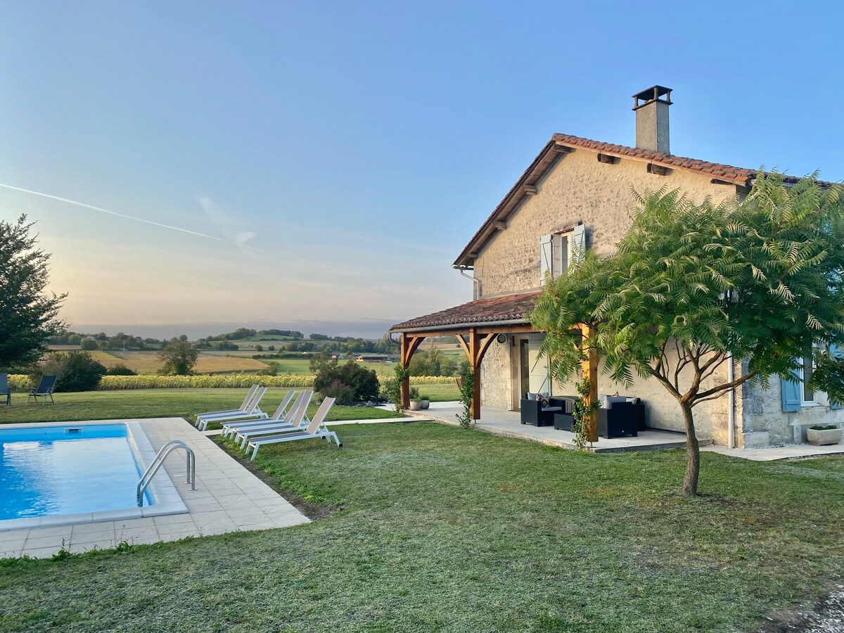 Luxury French gite, just outside the lovely market town of Aubeterre. Newly refurbished to a very high standard, with a large open-plan kitchen/family room , 1 Double & 2 Twin bedrooms (all with private shower room). 10 x 5m HEATED (May and September other times on request at a charge) pool over looking open fields and large patio. Walk into the local village to make use of the local shop for your fresh morning bread and croissants etc, or enjoy rivers, chateau and vineyards further afield.