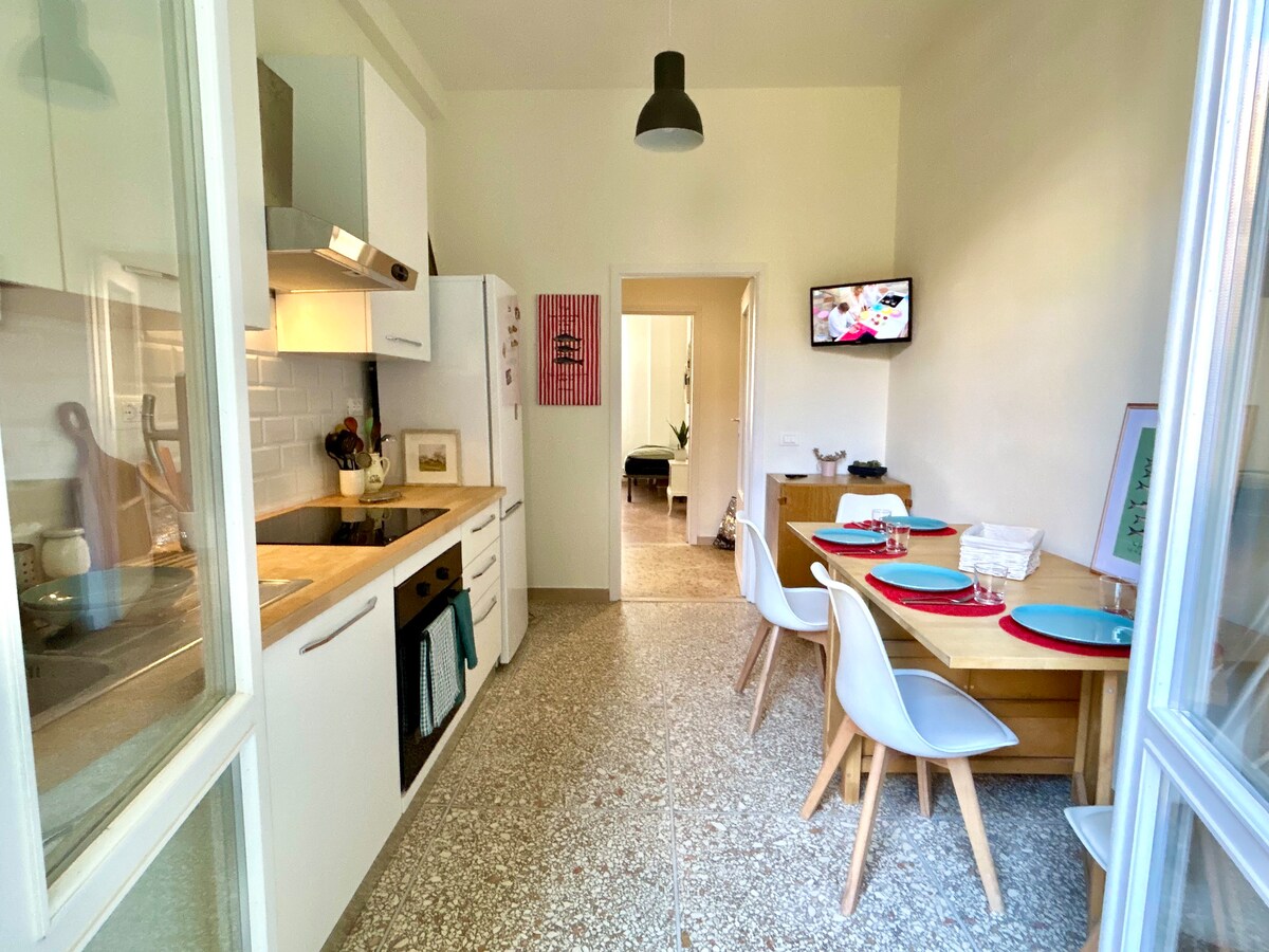 Ładne mieszkanie w historycznym centrum Pizy, położone 50 metrów od słynnego dzieła K. Haringa Tuttomondo. Blisko wszystkich atrakcji, w pobliżu dworca kolejowego (dwie minuty spacerem), rzut kamieniem od głównej ulicy (ze sklepami, restauracjami, barami i supermarketami), dziesięć minut od Wieży i Piazza dei Miracoli: doskonałe miejsce na zwiedzanie miasta na piechotę. Charakteryzuje się jasnością i ciszą, a także balkonem z widokiem na miasto.