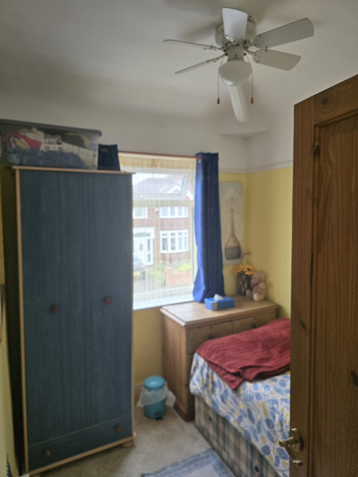 The room is newly refurbished and overlooks the back garden on a quiet leafy street in Old Trafford. The bed itself has a new 10 inch thick mattress ensuring the weary traveller has an excellent nights sleep ! You will wake up to the sound of birdsong:) There is a large kitchen and dining area, a day room on the first floor and a shared bathroom/toilet. There is 1 additional person in the adjacent bedroom