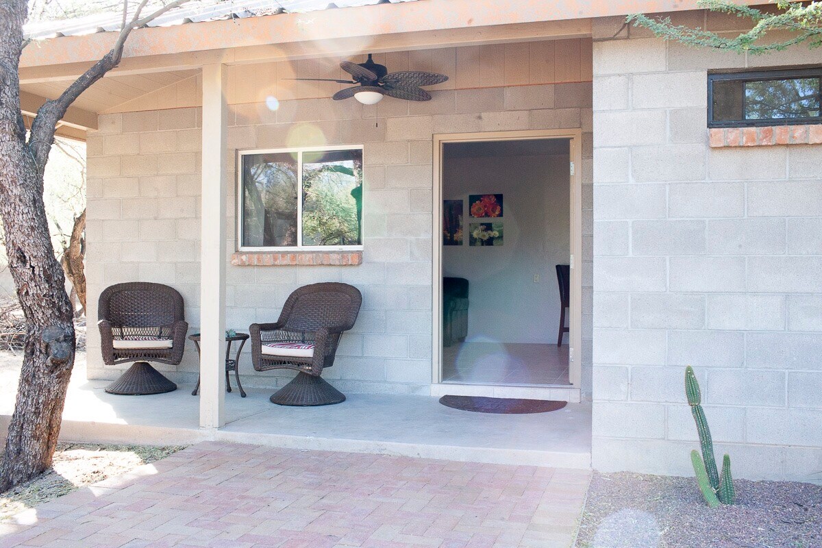 Prywatny pokój z oddzielnym wejściem, łazienką, tarasem, parkingiem i aneksem kuchennym. BEZ opłaty za sprzątanie. Opłata za pojedyncze zwierzę. Nie polecamy dla osób śpiących w dzień. Mamy 2 małe psy. Jesteśmy 4 mile od UofA, 6 mil od I-10, 7 mil od międzynarodowego lotniska Tucson. Pokój 16'x12' z podwójnym łóżkiem, mini-lodówką, tosterem, kuchenką mikrofalową, płytą grzewczą, patelniami, naczyniami, ekspresem do kawy, blenderem, prysznicem bez barier, toaletą ADA, poręczą bezpieczeństwa, rampą wejściową, wiata / patio parking i palenie na zewnątrz.