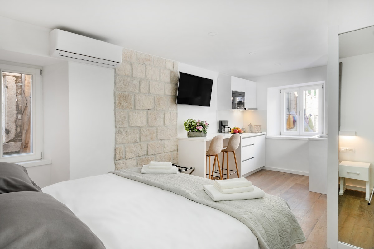 Idealnie położony w samym sercu miasta, zaledwie kilka kroków od Pałacu Dioklecjana, ten przytulny apartament oferuje wszystko, czego potrzebujesz, aby Twój pobyt był wygodny i przyjemny. Stylowo urządzony, wyposażony w łóżko typu queen size, kompaktową, ale dobrze wyposażoną kuchnię, klimatyzację, telewizję kablową i szybkie Wi-Fi.