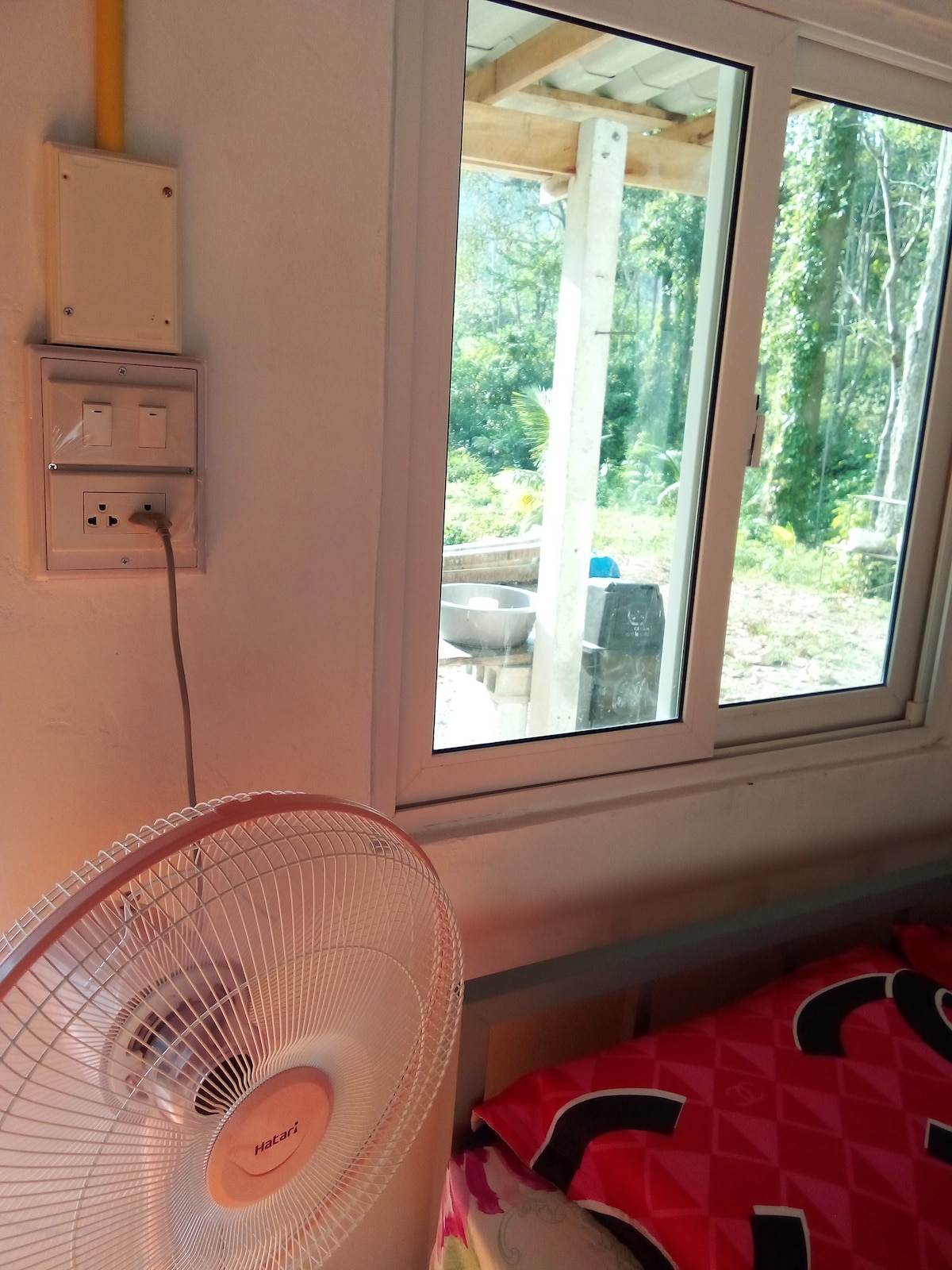 Przytulny drewniany dom z widokiem na morze i zachód słońca, otoczony przyrodą. Cicha, spokojna i przyjazna atmosfera. W pokoju znajduje się wentylator, wygodne łóżko, prywatna łazienka — idealne na relaksujący pobyt blisko natury.