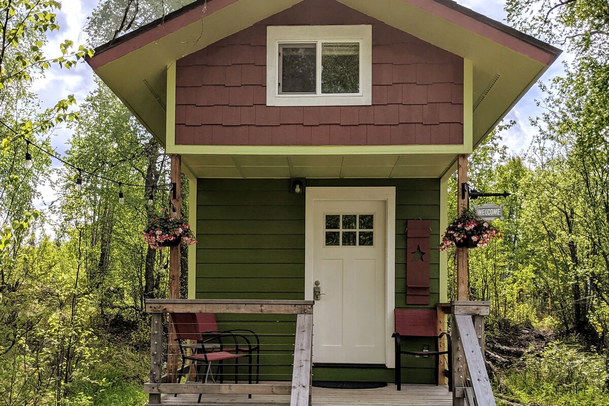 Ten mały zielony dom znajduje się w odległości spaceru od centrum Talkeetna. Znajduje się na cichej ślepej uliczce prostopadle do wiejskiego lotniska. Jest dużo miejsc parkingowych na długim podjeździe obok domu przy drodze. Na podwórku jest palenisko i drewno. Jest wygodny dla 2 osób, jednak 4 osoby mogą go wykorzystać, ponieważ jest kanapa, którą można rozłożyć na łóżko. Posiada telewizor Smart TV z Roku, w pełni wyposażoną kuchnię, pralkę, wannę/prysznic i Wi-Fi. Zwierzęta są mile widziane.