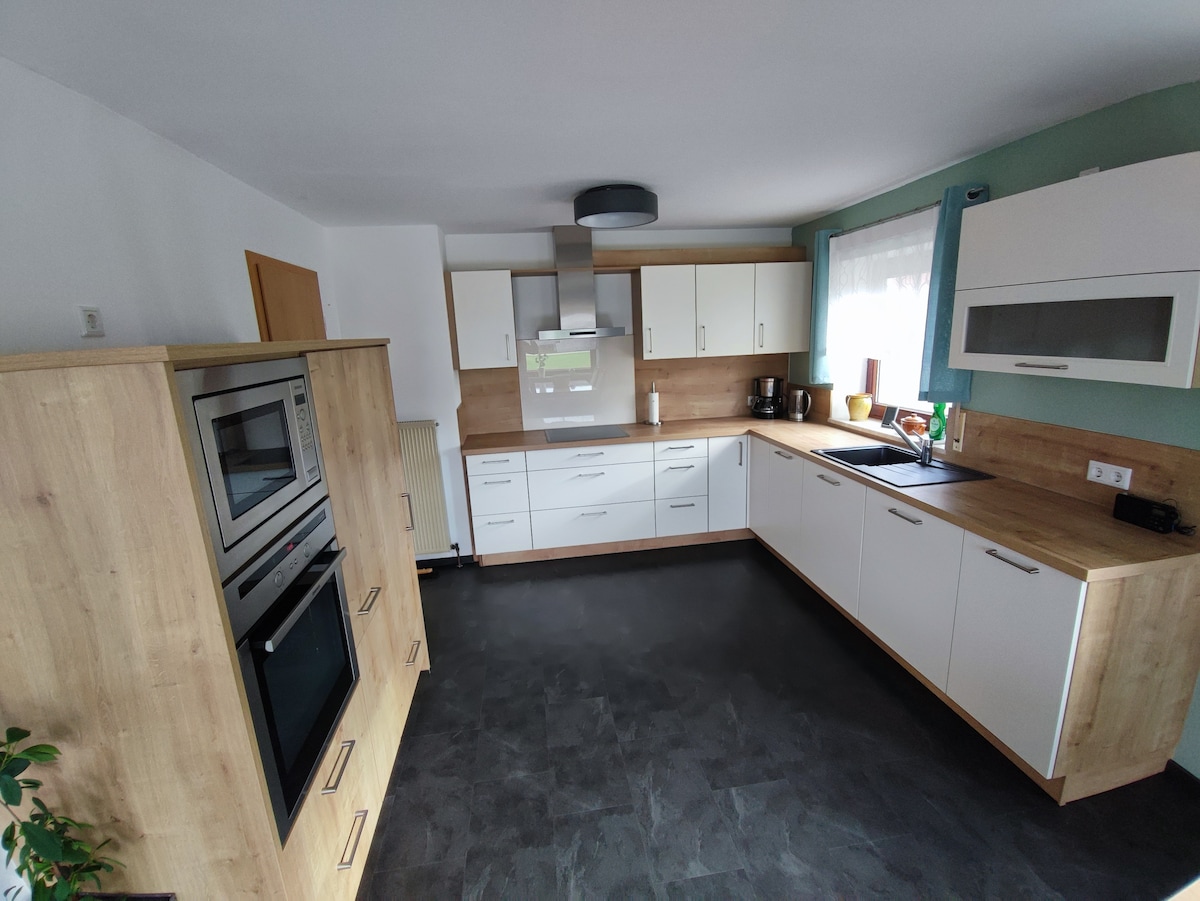 Wir begrüßen Sie recht herzlich in unserem idyllisch gelegenen Ferienhaus. Es erwartet Sie eine neu renovierte Unterkunft mit liebevoll eingerichteten Zimmern, zwei modernen Bädern und einer vollausgestatteten Küche. Es stehen kostenlose Parkplätze am Haus zur Verfügung. WLAN ist kostenfrei nutzbar. Unser Ferienhaus ist für bis zu 6 Personen (+ Babybetten) wunderbar geeignet, z.B. auch für Familientreffen sowie für Motorrad-, Radfahrer und Wanderer und alle, die sich eine Auszeit gönnen wollen.