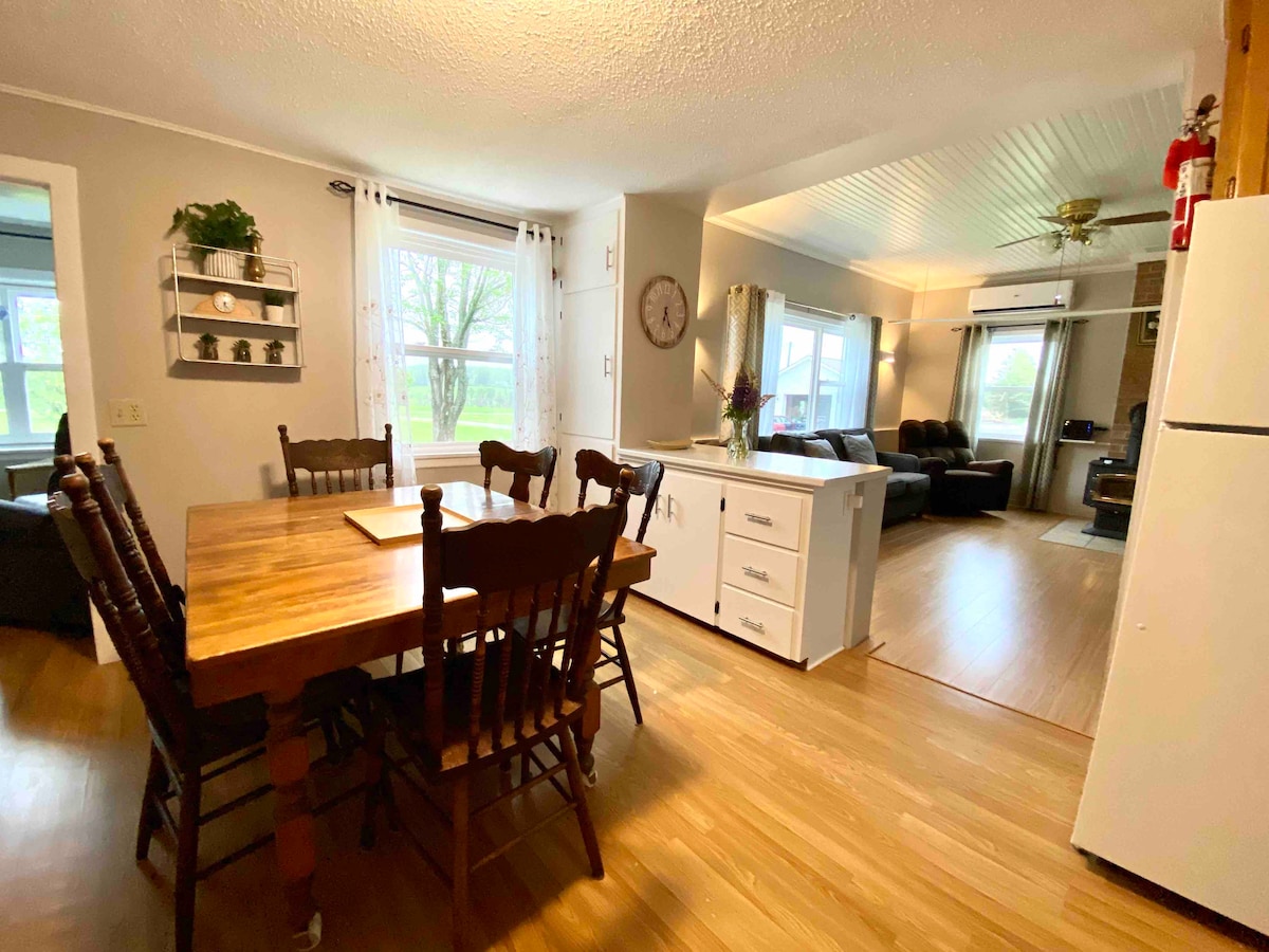 Nowoczesny, ale skromny, nowo wybudowany dom, położony w samym sercu PEI. Dwie sypialnie, jedna łazienka, sześć bardzo wygodnych miejsc do spania dzięki dużej kanapie i/lub materacowi dmuchanemu. 12 kilometrów od Summerside, 25 kilometrów od plaży Cavendish i 50 kilometrów od Charlottetown. Niezależnie od tego, czy podróżujesz, czy odwiedzasz rodzinę i przyjaciół, chcesz odkryć plaże, potrzebujesz spokojnego wypoczynku, czy planujesz wycieczkę golfową. To idealna lokalizacja na wakacje.