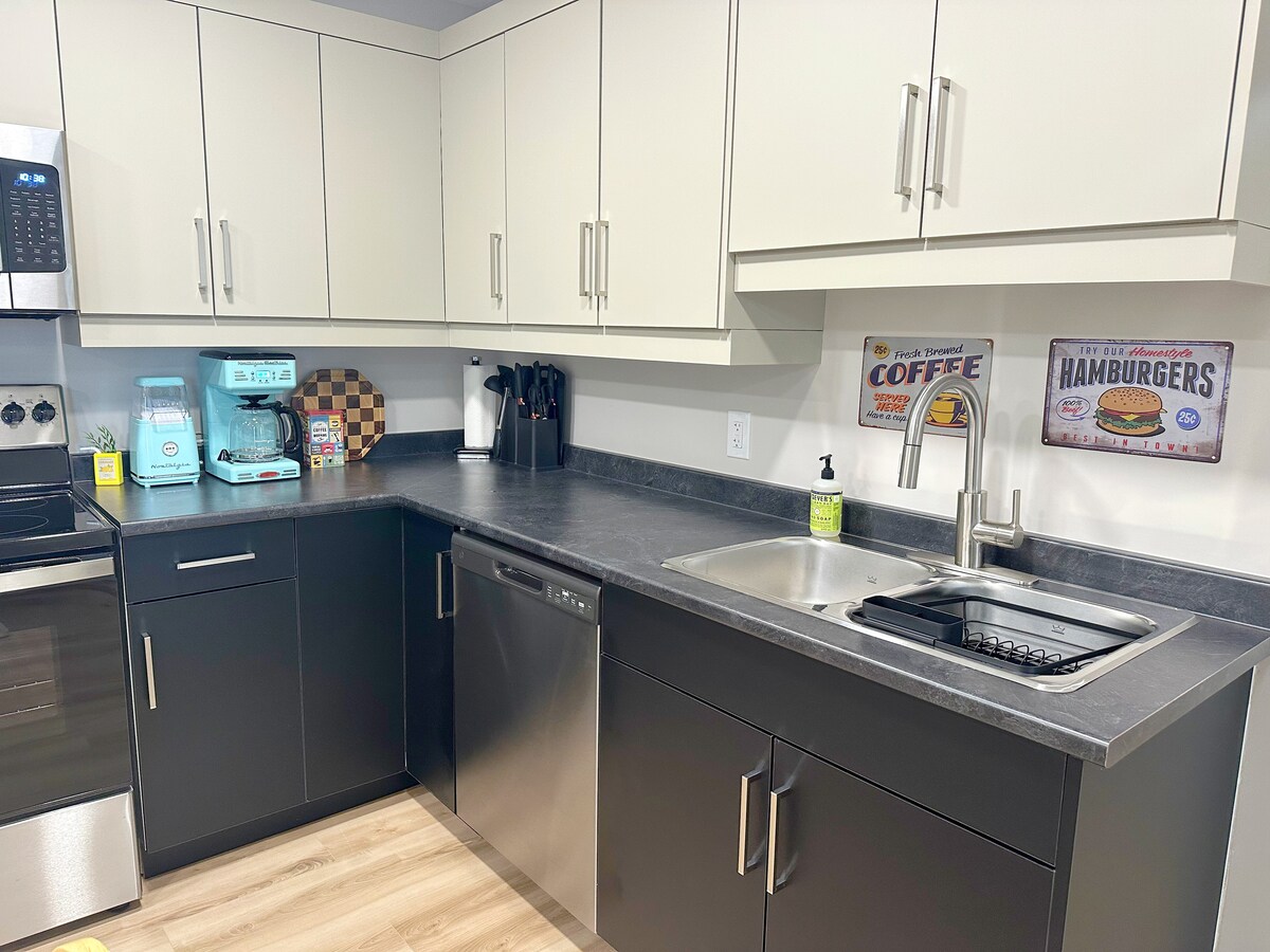 Stylowe miejsce na pobyt w samym centrum. W samym sercu Summerside możesz spacerować po mieście i odkrywać nasze piękne nabrzeże i słodkie sklepy – lub po prostu 20 minut jazdy od jednej z naszych wielu plaż. Ten pięknie urządzony apartament dwupoziomowy jest idealnym miejscem dla par. W głównej sypialni znajduje się duże łóżko, kominek, telewizor, garderoba i łazienka z wanną. Druga sypialnia jest urządzona jako biuro.