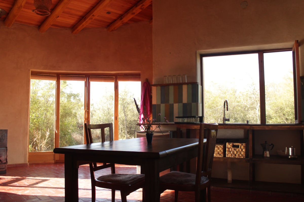 Niedawno ukończona chatka z adobe i kamieniem, drewniana podłoga i dużo światła. U podnóża Cerro Champaqui z własnym zejściem do potoku. Wiejskie i ciche miejsce, ulica ziemi, cisza i spokój w naturze. Salamander ciepły zimą i świeże lato. Termo solarium, naturalna harmonia. Idealne dla miłośników ciszy i przyrody.