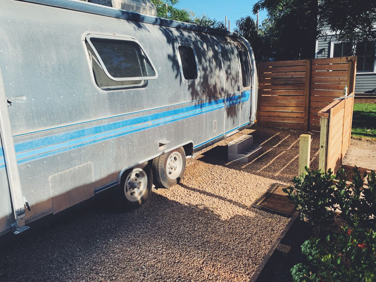 Kamper Airstream na podwyższonym podłożu w wschodnim Austin