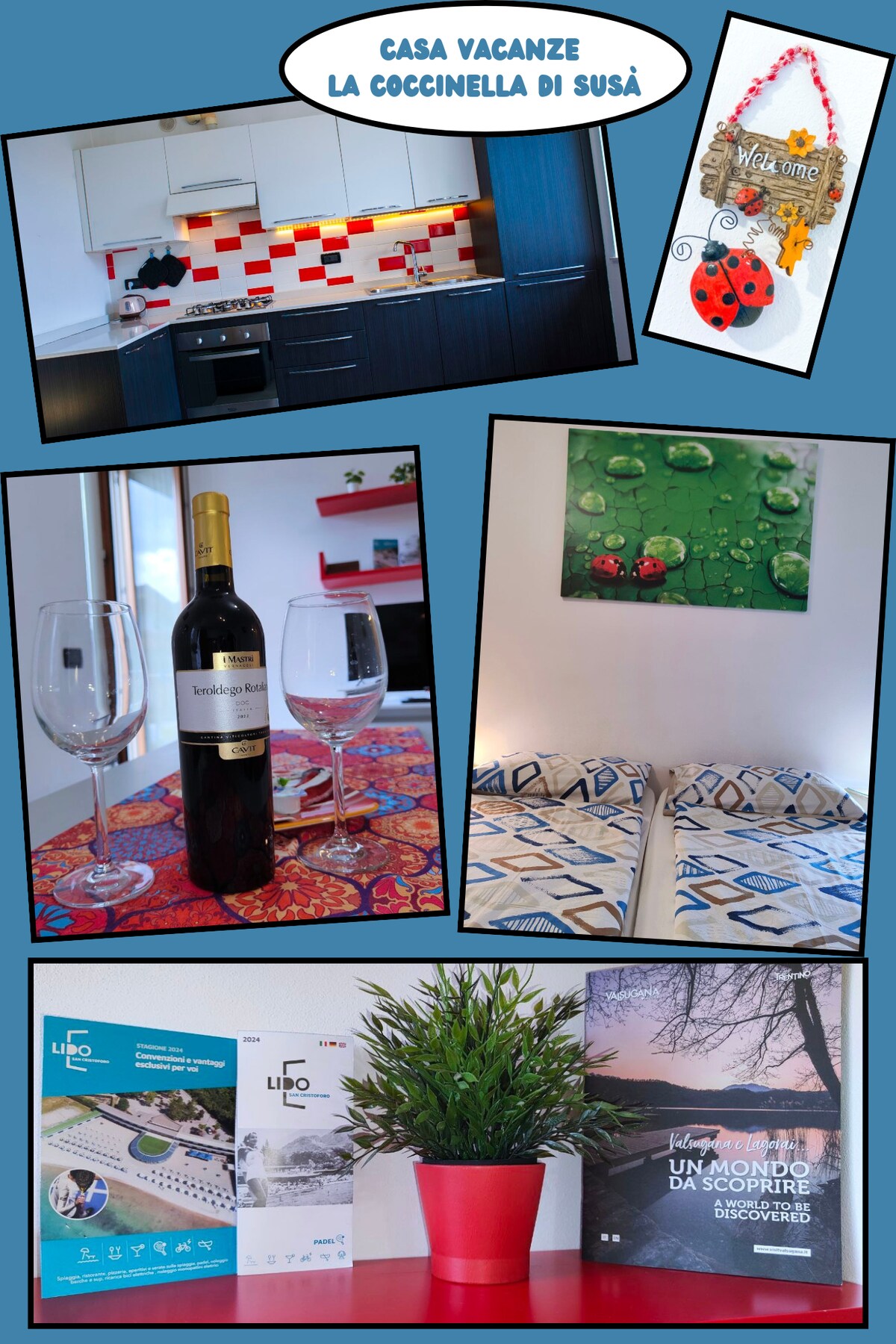 Apartament słoneczny składający się z: Pokój dwuosobowy z możliwością dostawienia dodatkowego łóżka Pokój dwuosobowy Łazienka z prysznicem (odnowiona w 2020 roku) Kuchnia z piekarnikiem, kuchenką mikrofalową, lodówką i gazem. Pokój z sofą, fotelem i telewizorem. Taras ze stolikiem i krzesłami. Na zewnątrz dostępny jest altanka ze stołem i ławkami. Możliwość skorzystania z rowerów ze wspomaganiem do zwiedzania jeziora i jego okolic, w tym słynnej Certosa di Vedana.