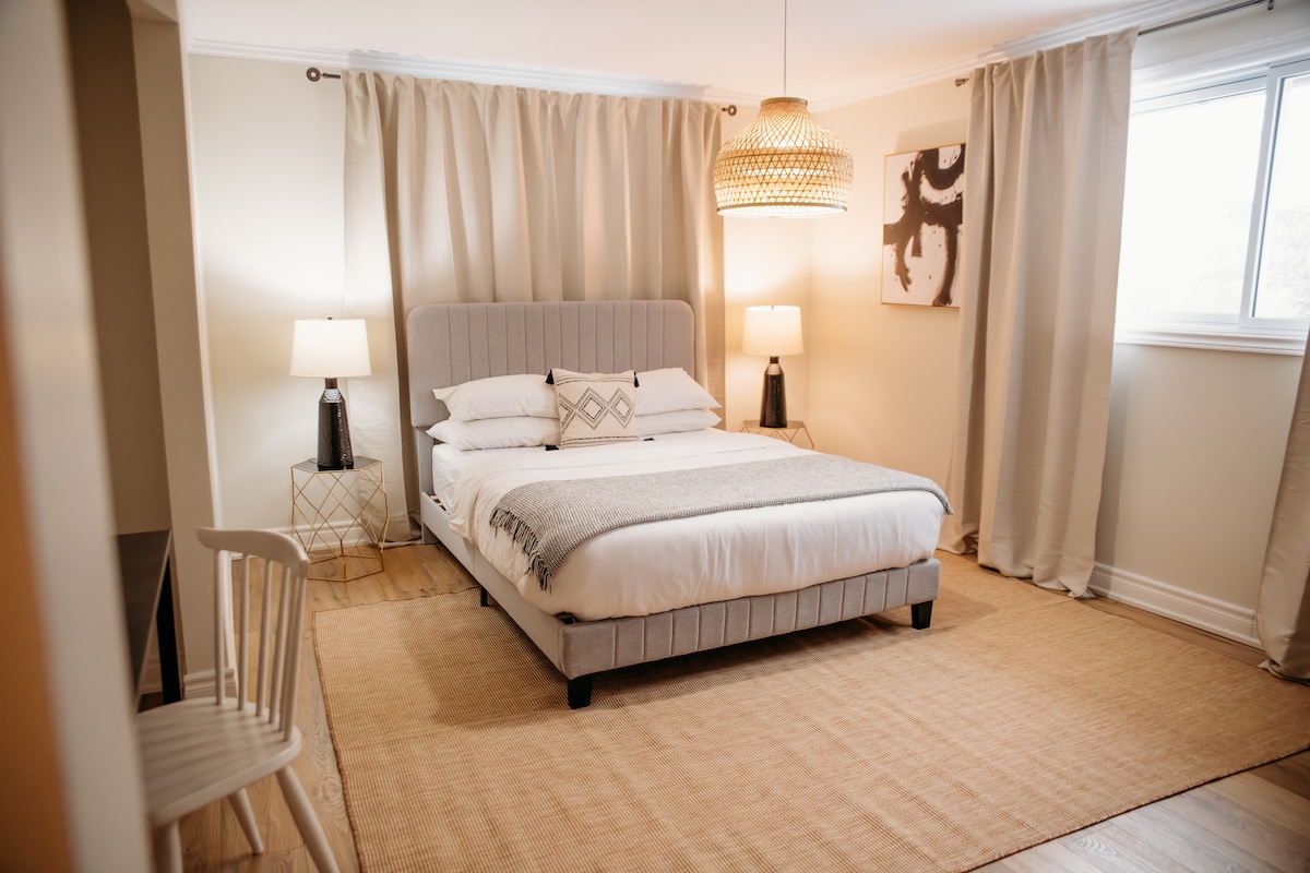 Zrelaksuj się w jasnym, przestronnym domku położonym na prywatnej działce o powierzchni około 0,4 hektara, około godziny drogi od obszaru Greater Toronto. Odpręż się podczas wieczorów przy palenisku, zagraj w bilard i delektuj się posiłkami z grilla, a także skorzystaj z szybkiego Wi-Fi i specjalnego stanowiska do pracy zdalnej. W pobliżu znajduje się również Park Regionalny Presqu’ile, gdzie można znaleźć plaże i szlaki, centrum Brighton z kawiarniami i lokalami gastronomicznymi oraz Ste. Spa Anne na relaksującą jednodniową wycieczkę. Chcesz odkryć więcej? Wybierz się na wycieczkę do Sandbanks i winnic w Prince Edward County.