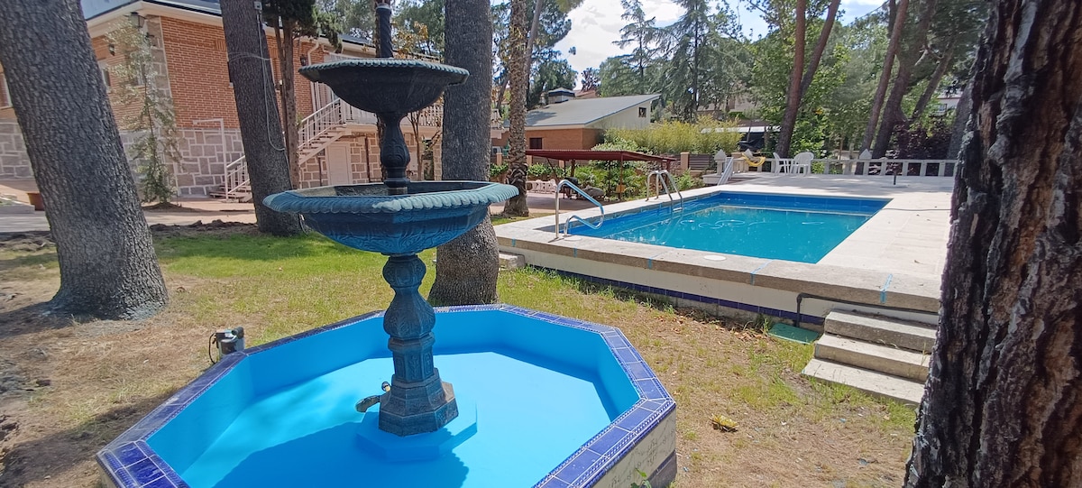 Preciosa casa de los 60 rehabilitada, en una gran parcela de 1500m con piscina privada y grandes árboles. Tranquilidad y privacidad en el corazón del bosque en uno de los pueblos más bonitos de la sierra de Madrid. Podrás caminar durante días por los bosques y montañas del parque nacional de Guadarrama desde la misma puerta de casa. Ideal para compartir dos familias. Totalmente equipado con mucho encanto. Chimenea, Barbacoa de gas, ping-pong, cama elástica, tobogán, canasta basket, wi-fi...