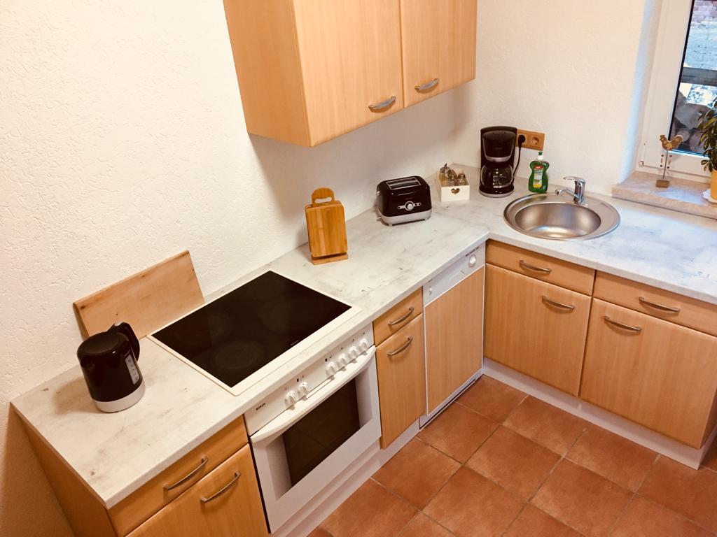 30 m² mieszkanie w odnowionym domu dwurodzinnym Wejście Pokój główny z łóżkiem 1,60 m, kanapą (z funkcją spania o szerokości 1,30 m), stół jadalny jako kredens W pełni wyposażona kuchnia (najwyższej jakości urządzenia, kawa, herbata, czekolada do picia gratis) naprzeciwko podwójna umywalka po lewej stronie wejście do otwartego prysznica z deszczownicą po prawej stronie toaleta (zamykane drzwi) el. rolety pokój główny i toaleta Plisy na wszystkich oknach Pojazd(y) można zaparkować bezpośrednio przed posesją (ślepy zaułek)! Podwórko jeszcze nieodnowione