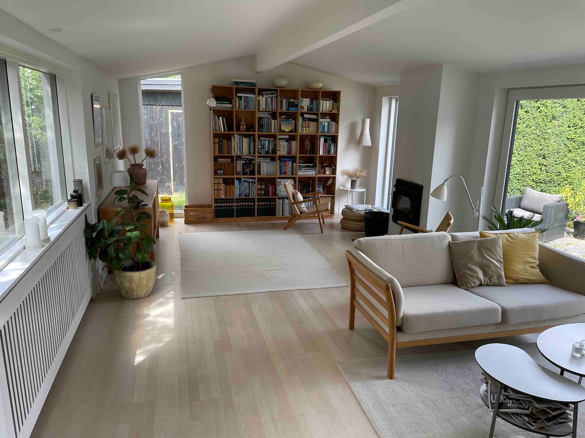 Litterally <5 min walk from Hørsholm castle garden, Hørsholm church, Aboretet (botanical garden), pedestrian shopping area, supermarket and bus stop. In addition <10 minutes by bus to train station and Rungsted Havn (plenty of restaurants). 10 km to Lousiana museum of modern art and 20 km from Kronborg Castle and Copenhagen centre which can be reached in 30 minutes by train. 5 minutes off highway E45 between Elsinore and Copenhagen. 45 minutes by car from CPH Airport, 1+ hour by public transpor