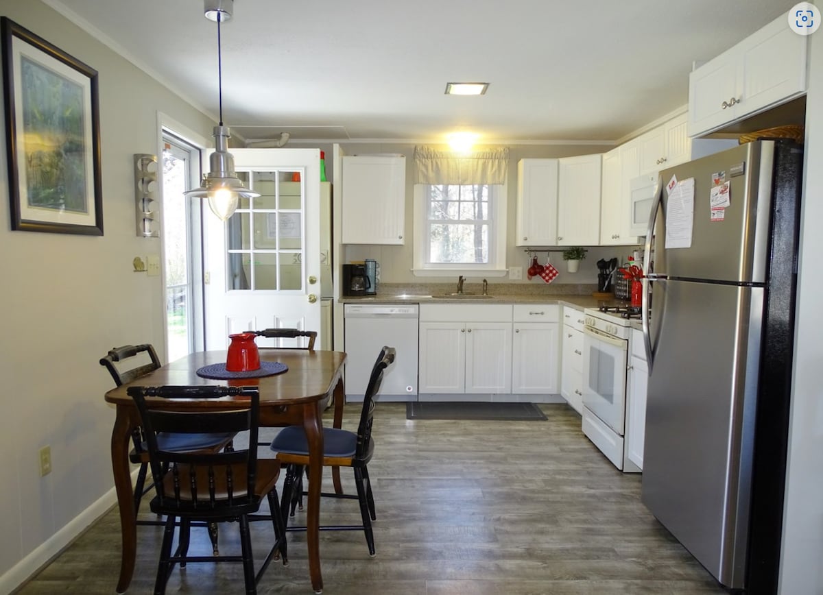Przeprojektowany w 2017 roku przez lokalnego artystę i położony w spokojnym East End, ten wolnostojący domek przybliży Cię do życia, którego pragniesz, i otoczy Cię prawdziwym spokojem. 1,5 mili poza centrum miasta, ta przytulna przestrzeń zapewnia spokój i prywatność. Otwarty plan piętra wpuszcza światło słoneczne, a prywatny taras zapewnia mnóstwo miejsca na relaks. Krótki 3-5 minutowy spacer do zatoki, gdzie można spacerować przez wiele kilometrów podczas odpływu. Psy mile widziane! Parking na miejscu dla 1 samochodu, pralnia, wspólne podwórko