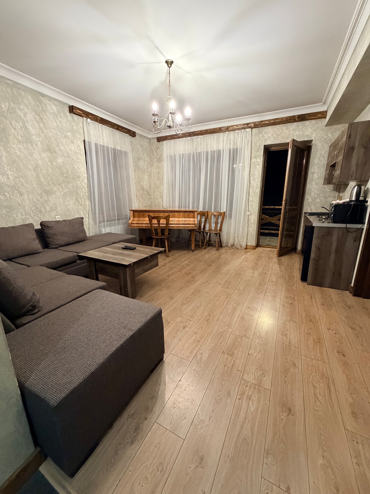 Beautiful holiday apartment in Tsaghkadzor, 65m2 with one bedroom. Large and bright living room with sofa bed with access to balcony, fully equipped kitchen. If you want a great family holiday in main ski resort of Armenia this holiday home will be perfect for you.
