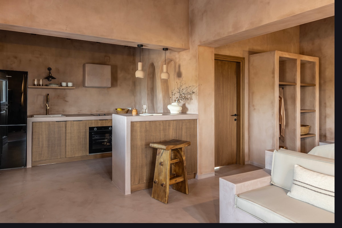 Located in a typical greek village with ancient atmosphere, surrounded by a forest of cypresses, Villakalimera stands out for its character and charm. There, you can relax in the many outdoor articulated spaces, under the shadow of two centuries-old apricot trees among cypress and olive trees, just few steps from Foki beach.