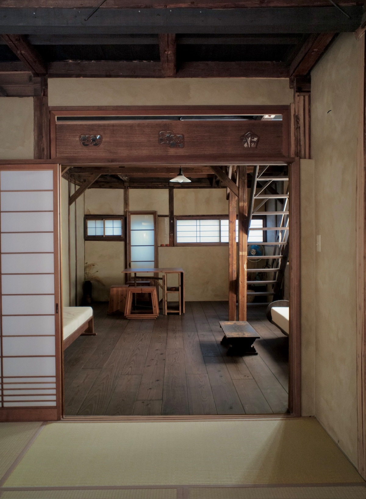 Ten zabytkowy dom z 1909 roku, położony w dzielnicy Joto w Osace, jest rzadkim ocalałym z czasów II wojny światowej. Odnowiony w 2015 roku przez znanego projektanta, rozciąga się na 150metrów, łącząc historyczny urok z nowoczesnym luksusem w spokojnym zaciszu w centrum miasta. Elegancki wystrój harmonizuje przeszłość i teraźniejszość, oferując kulturowe zanurzenie i przestronny komfort. Dzięki dwóm łazienkom, oddzielnym toaletom, umywalkom i dużej łazience zapewnia prywatność i czystość grupom. Poznaj kulturę, historię i wygodę, a Twój idealny pobyt w Osace czeka.
