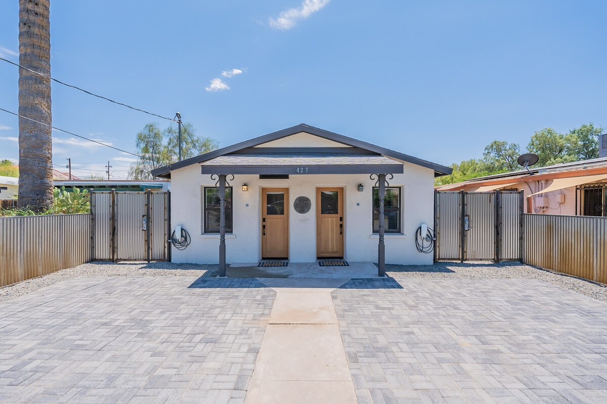 ✓ Retro appliances ✓ Well-equipped/stocked kitchen ✓ Wifi & smart TV ADDITIONAL FEE: To preserve the condition of our property, a refundable Safety Deposit ($700) or non-refundable Damage Waiver ($42.80) is REQUIRED. After booking, you'll receive a Boarding Pass link via Enso Connect, an AUTHORIZED AIRBNB PARTNER, to provide your name, phone, and email, and choose either the Safety Deposit or Damage Waiver. 3 min → U of A (walkable/bikeable) 3 min → Downtown Tucson 25 min → Sabino Canyon