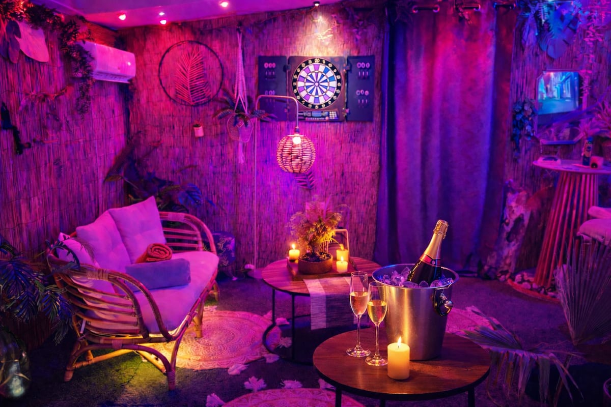 ✨ Odkryj Mirage Tropical, wyrafinowany zakątek nad brzegiem Loary 🌴. Skorzystaj ze spa, stołu do masażu, eleganckiego tarasu i egzotycznej dżungli, aby oderwać się od codzienności.Baw się dobrze, grając w rzutki, delektuj się egzotycznym aperitifem lub zrelaksuj się w wyjątkowej atmosferze. Wieczorem pokój rozświetlają hipnotyzujące kolory, które tworzą elegancką i romantyczną atmosferę💖. Tutaj każdy szczegół sprawi, że Twój pobyt będzie niezapomniany.🌴❤️❤️💕💕💕👄🫂❤️
